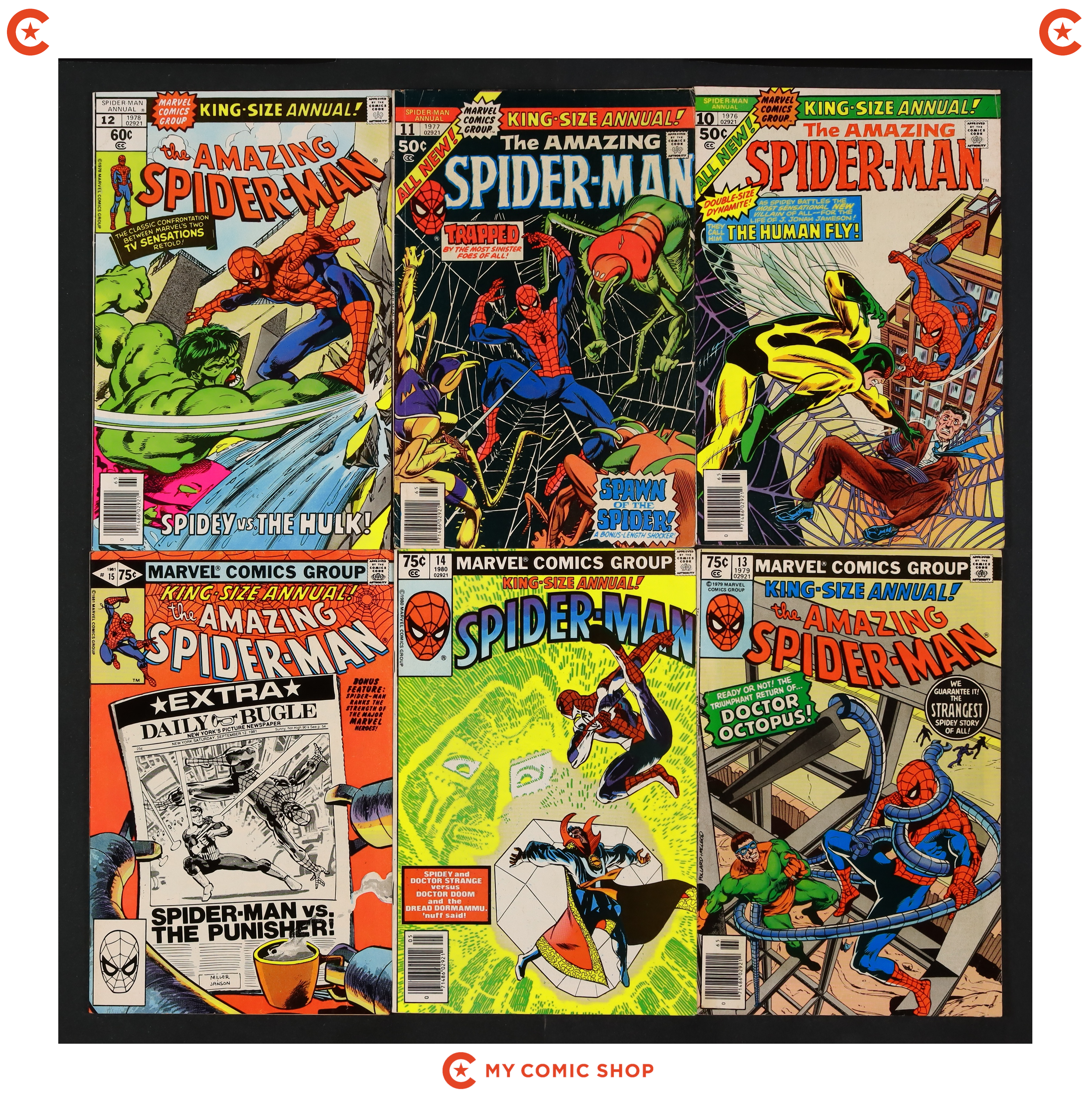 Issues 10-12, 13N, 14N, 15D, 17, 18, and 19D of Amazing Spider-Man (1963 1st Series) Annual. Most will grade in the VG range with #19 grading GD.