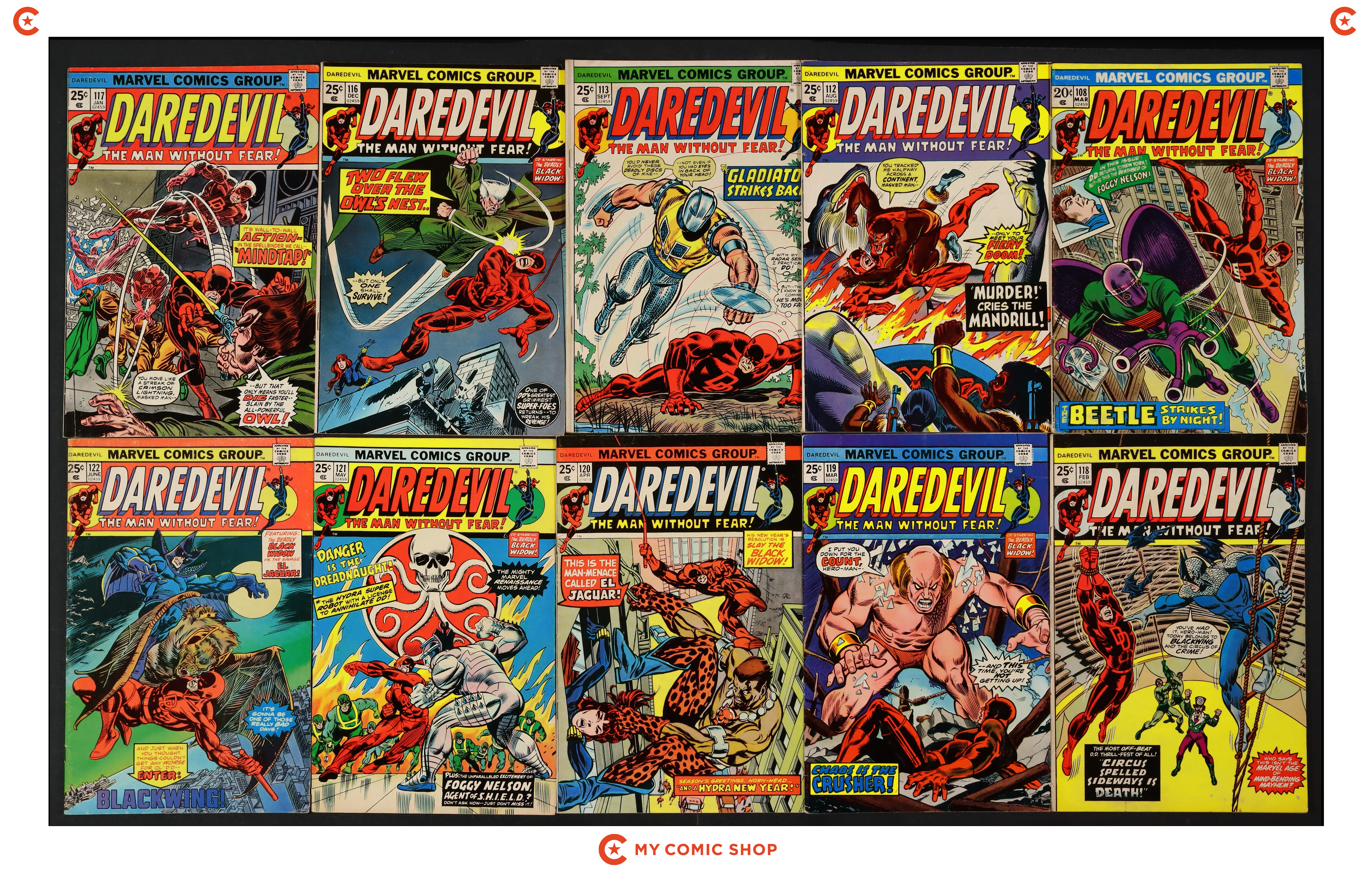 Issues 108, 112, 113, and 116-122 of Daredevil (1964 1st Series). Most will grade in the VG range with a couple grading closer to GD.