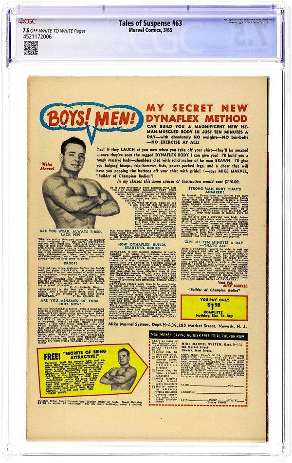 Tags: Marvel Legacy Numbering: Captain America (part 63), Marvel Legacy Numbering: Tales of Suspense (part 63), Captain America, Iron ManTales of Suspense (1959) 63 CGC 7.5