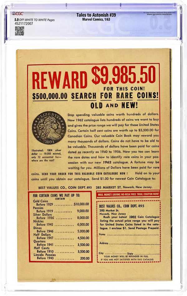 Tags: Marvel Legacy Numbering: Hulk (part 39)Tales to Astonish (1959-1968 1st Series) 39 CGC 5.0