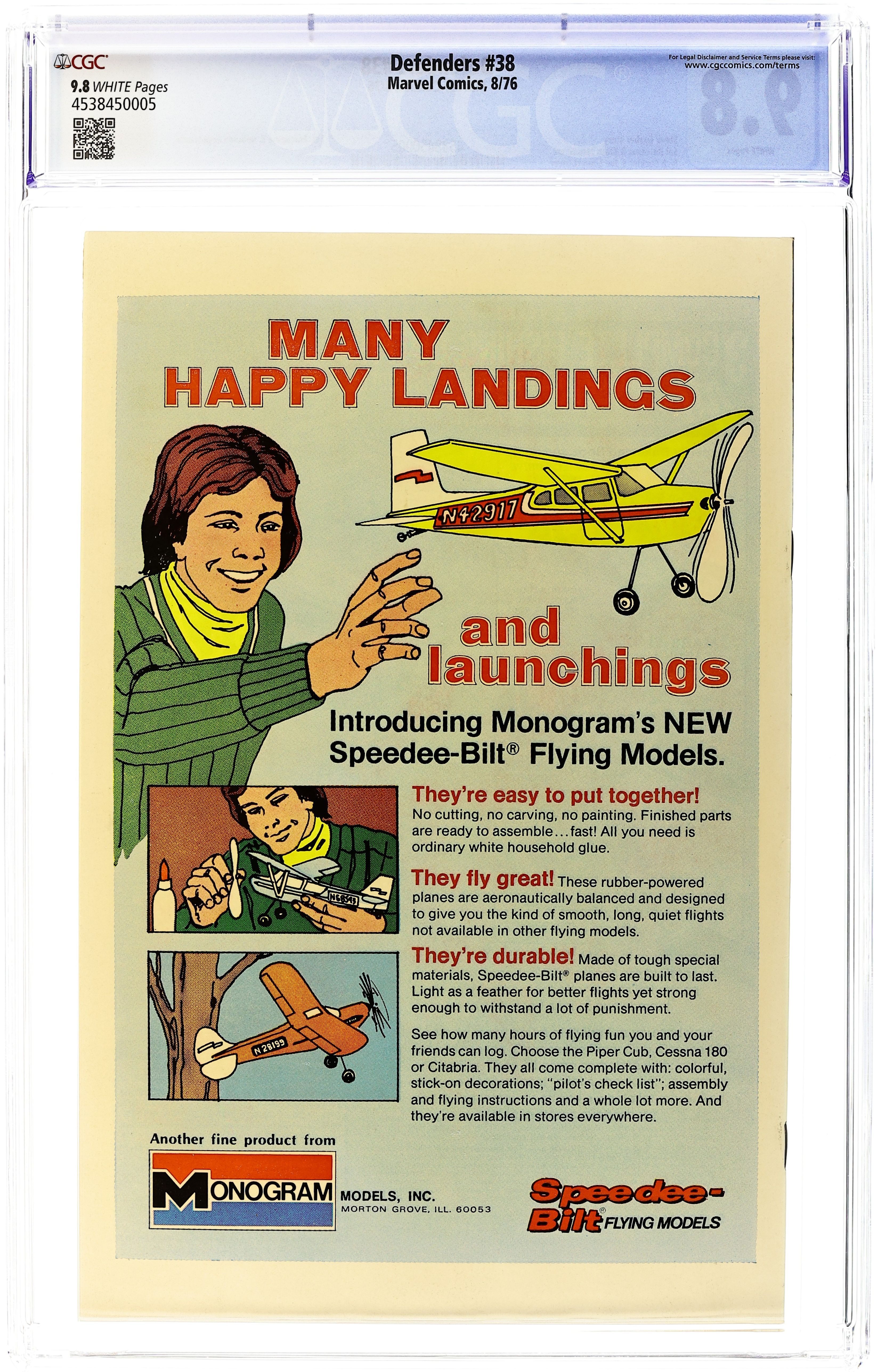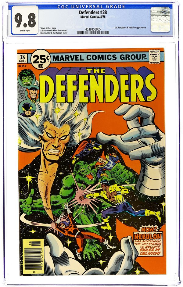 Last 25-cent cover price. Cover pencils by Rich Buckler, inks by Joe Sinnott. Exile to Oblivion! Script by Steve Gerber, pencils by Sal Buscema (layouts) and Klaus Janson (finished art), inks by Klaus Janson; The Defenders escape from the other dimension where Nebulon left them and capture Porcupine and Eel. Valkyrie is still in jail; The Elf with the gun kills Stu. Letters to the editor from historian Peter Sanderson and Ann Nichols. The letters page also contains Marvel Value Stamp Series B # 6 (Conan by Barry Windsor-Smith). One-page Hostess ad, Captain America and the Red Skull. 36 pgs. Cover price $0.25. Grade: CGC 9.8 explanation of grade Condition: Used (collectible)