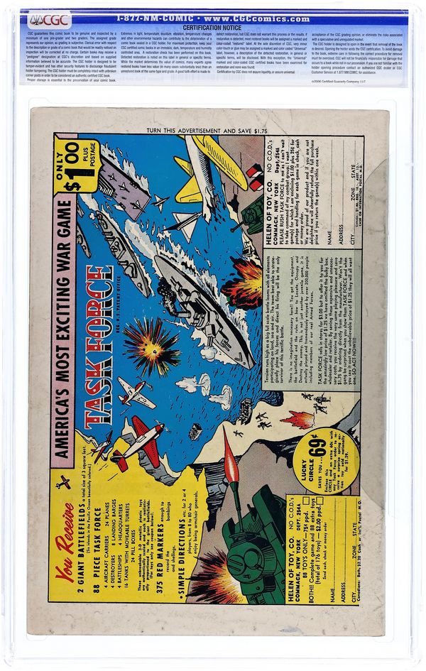 Ended Jul 15 2025 Bid History 18 bids Winning Bid $295 Cover by Bruno Premiani. 1st appearance and origin of the Teen Titans (Robin, Kid Flash, Aqualad) in "The Thousand-and-One Dooms of Mr. Twister," script by Bob Haney, art by Bruno Premiani; The townsfolk of Hatton Corners is in the midst of a dispute; The adults of the neighborhood feel that the teen populace are too wild and unruly, whereas the teens feel that the adults are too "un-hip" and incapable of relating to teenage problems; Ironically, the teen youth movement is led by Eddie Corliss, son of the town's mayor; Eddie organizes a club house meeting and invites three famous teen super-heroes to come to Hatton Corners to support their cause; They invite Aqualad, Kid Flash and Robin; Before the heroes arrive however, a crazed super-villain known as Mister Twister blusters through town riding atop a giant cyclone. Cap's Hobby Center by Henry Boltinoff. 36 Pages, Full Color. Cover price $0.12. Grade: CGC 5.5 explanation of grade Condition: Used (collectible)