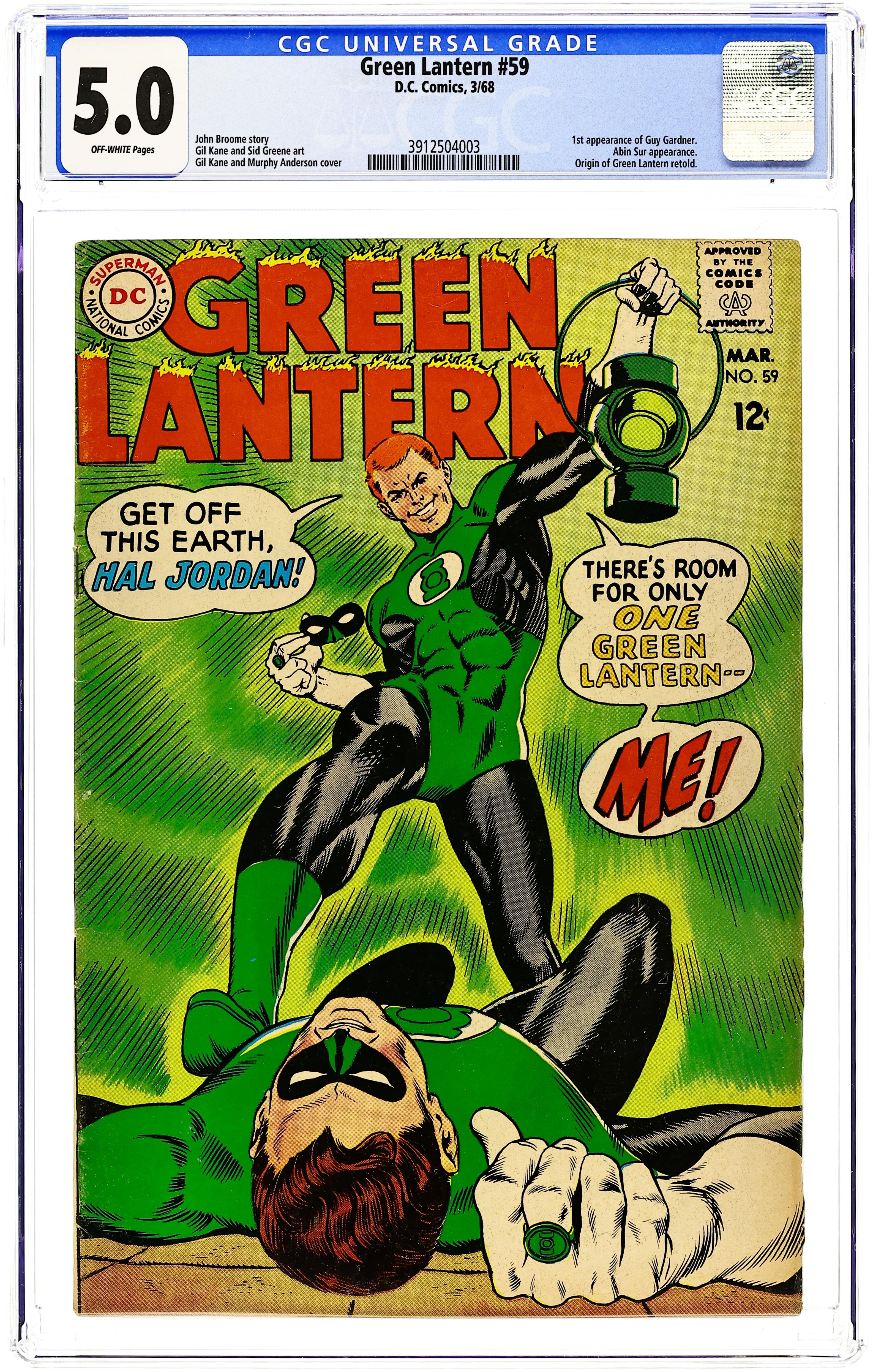 1st appearance of Guy Gardner. Cover pencils by Gil Kane, inks by Murphy Anderson. Earth's Other Green Lantern!, script by John Broome, pencils by Gil Kane, inks by Sid Greene; The Guardians use their scientific knowledge to show Hal what would have happened if Guy Gardner had been the first man chosen by Abin Sur to wield the power ring. Supergirl ad. Statement of ownership--average print run 366,000; average paid circulation 199,000. 36 pgs., full color. $0.12. Cover price $0.12. Grade: CGC 5.0 explanation of grade Condition: Used (collectible)