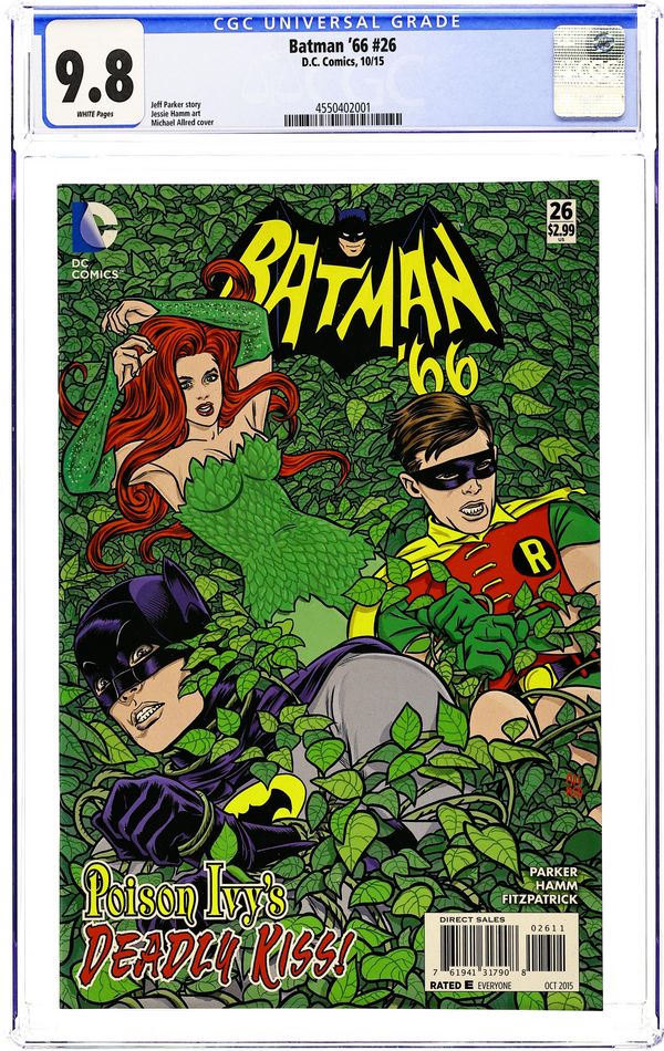 Ended May 26 2025 Winning Bid $36 Written by Jeff Parker. Art by Jesse Hamm. Cover by Michael Allred. Can it be? Is Louie the Lilac really pushing up daisies? Batman's investigation of the criminal's apparent demise leads him to the abandoned Isley Nursery. But it's a floral trap that awaits the Dynamic Duo as they encounter a new villainess, the one and only Poison Ivy! 28 pages, full color. All Ages Cover price $2.99. Grade: CGC 9.8 explanation of grade Condition: Used (collectible)