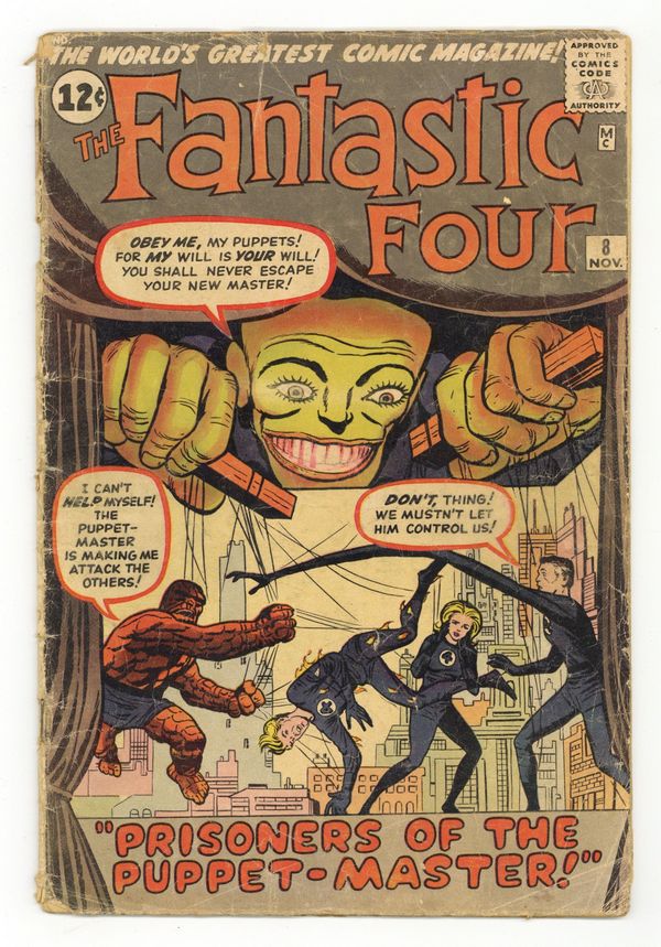 Ended May 20 2025 Winning Bid $69 Cover pencils by Jack Kirby, inks by Dick Ayers. First appearance of Puppet Master and Alicia Masters in "Prisoners of the Puppet Master!" (making this the fourth issue in a row that has either "prisoners" or "captives" in the title!), script by Stan Lee, pencils by Jack Kirby, inks by Dick Ayers; The Puppet Master tests his radioactive clay that gives him the power to remotely control people that are modeled in the clay. The Human Torch character profile. "The Hands of the Puppet Maker" Part 2; The Puppet Master gets the Thing under his command and imprisons the Invisible Girl; He then sends the Thing and Alicia Masters to infiltrate the Baxter Building. "The Lady and the Monster!" Part 3; While acting under the Puppet Master's influence, the Thing is subjected to one of Mister Fantastic's potions that changes him back to Ben Grimm. "Face-to-face with the Puppet Master!" Part 4; The Puppet Master stages a jailbreak just to prove his might. Death of a Puppet! Part 5; The jail break is stopped by the Fantastic Four and the Puppet Master falls to what seems to be his death. 36 pgs. $0.12. Cover price $0.12. Grade: PR 0.5 explanation of grade Condition: Used (collectible)