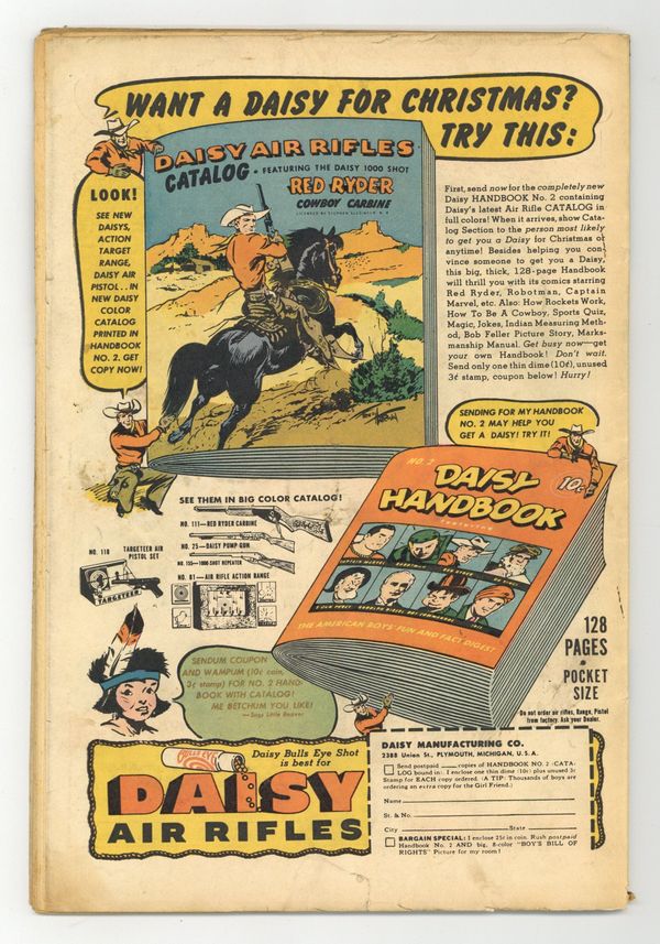 Ended Jul 14 2025 Bid History 17 bids Winning Bid $73 Cover art by John Celardo. "Banshee Valley," art by John Celardo; White renegades impersonate the fire god of the B'tongis and demand the B'Tongis act as their raiding force. KaƤnga exposes the impersonations and N'geeso's tribe help route the B'Tongis. Untitled story; Simba takes the prey of Lokko, learning later that Lokko's hunt was part of a leopard adulthood ritual and that Lokko is now banished from his tribe. Untitled story, art by Dan Zolnerowich; The Baxters, treasure hunters, persuade Kim Reagan that his father was driven to suicide by Terry; They then use the distraction created by Kim's accusations to attempt to smuggle diamonds inside palm nut shells. Jungle Journal; The story of the circle of life in the jungle. Untitled story, art by Frank Doyle; Wambi rescues a baby gorilla from a tangle of vines and from hyenas. "Ambush at Dawn" text story. Untitled story, art by Maurice Whitman; Kenyon, a jewel thief, kills a two of a trio of royal siblings and takes their sacred gems; As he is attempting to kill the third, he is confronted by Tabu and the ghosts of his earlier victims. Untitled story, pencils by Matt Baker; Melton frames Camilla for his own looting of the Masais' Temple of Ka; She proves her innocence by capturing Melton with the rest of the treasure. 52 pgs., full color. Cover price $0.10. Grade: VG- 3.5 explanation of grade Condition: Used (collectible)