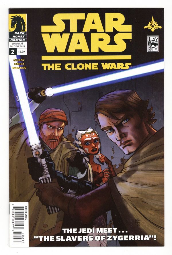 Written by Henry Gilroy. Art by Ramon K. Perez & Dan Parsons. Cover by Kilian Plunkett. Anakin Skywalker and Obi-Wan Kenobi have discovered the dastardly plot of Count Dooku: the entire population of the planet Kiros is in danger! Along with fresh new Padawan Ahsoka Tano, Anakin and Obi-Wan have liberated the droid-occupied planet and halted its destruction, but the native Togruta people have disappeared. Now, our Jedi must find the missing citizens, before Count Dooku can carry out his master plan! 36 pages, full color. Cover price $2.99. Grade: NM- 9.2 explanation of grade Condition: Used (collectible)