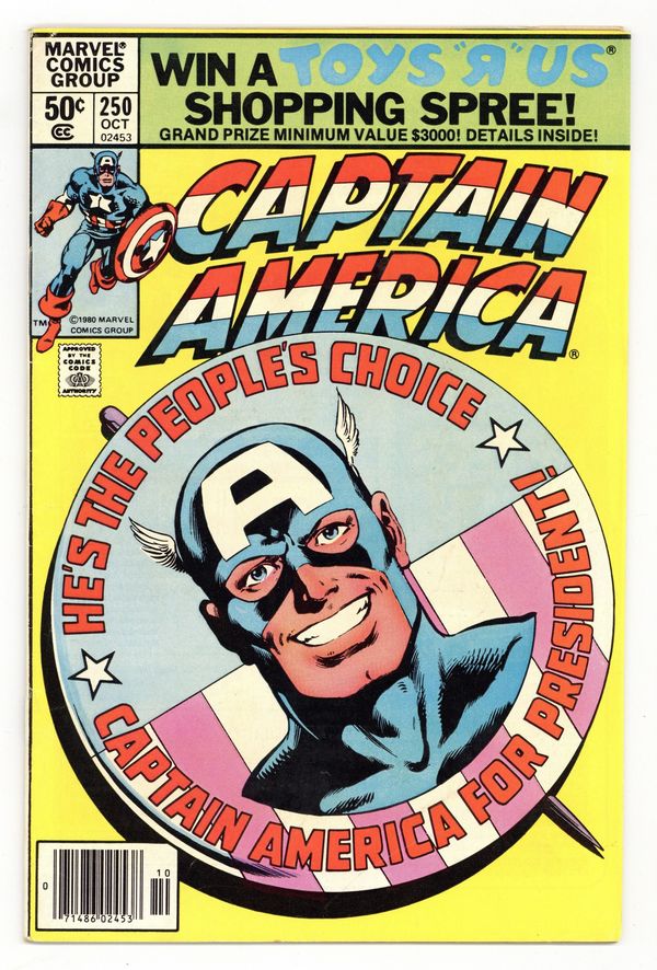 Mark Jewelers Advertisement Insert Variant. "Cap for President!" Plot by Roger McKenzie and Don Perlin. Script by Roger Stern. Art by John Byrne and Joe Rubinstein. The candidates are lining up for the 1980 presidential election: Jimmy Carter, Ronald Reagan, and Captain America? The New Populist Party wants Cap to run for the presidency as their party's candidate! What will America's Sentinel of Liberty decide to do? Cameo appearances by Dr. Strange, Daredevil, Nick Fury, Spider-Man, Beast, Iron Man, Vision, and the Wasp. 32 pages. Cover price $0.50. Grade: FN- 5.5 explanation of grade Condition: Used (collectible)