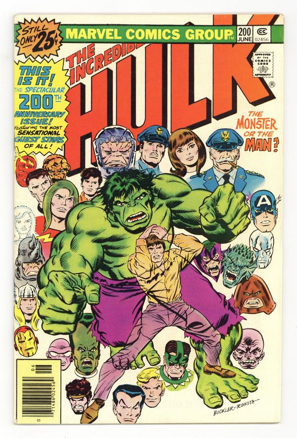 Mark Jeweler Advertisement Insert Variant. 25c cover-priced edition. "An Intruder in the Mind!" Script by Len Wein, pencils by Sal Buscema, inks by Joe Staton. Guest starring Doc Samson. Cameos by the Missing Link, the Juggernaut, the Abomination, the Leader, the Rhino, the Sandman, the Mandarin, Iron Man, Sub-Mariner, Hercules, the Silver Surfer, Modok, the Harpy, and the Gremlin. Rich Buckler/John Romita Sr. cover. Cover price $0.25. Grade: FN- 5.5 explanation of grade Condition: Used (collectible)
