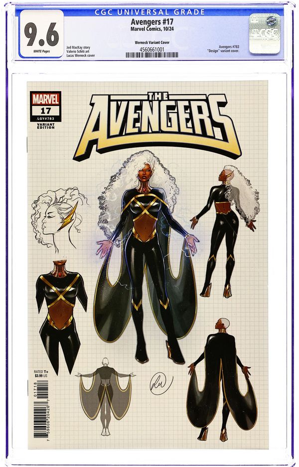 Ended Jun 10 2025 Winning Bid $17 Limited 1 for 10 Retailer Incentive Variant Cover. Written by Jed MacKay. Art by Valerio Schiti. Cover by Lucas Werneck. STORM JOINS THE AVENGERS! New arc starts here! Superstar artist Valerio Schiti (G.O.D.S.) takes the helm as series artist! In the aftermath of Blood Hunt and Fall of the House of X, where does that leave the Avengers? The team's roster won't be the only thing shaken up when a deadly threat sets its vengeful sights on Earth! PLUS: PART 6 OF DEADPOOL/WOLVERINE: WEAPON X-TRACTION! 28 pages, full color. Rated T+ Cover price $3.99. Grade: CGC 9.6 explanation of grade Condition: Used (collectible)