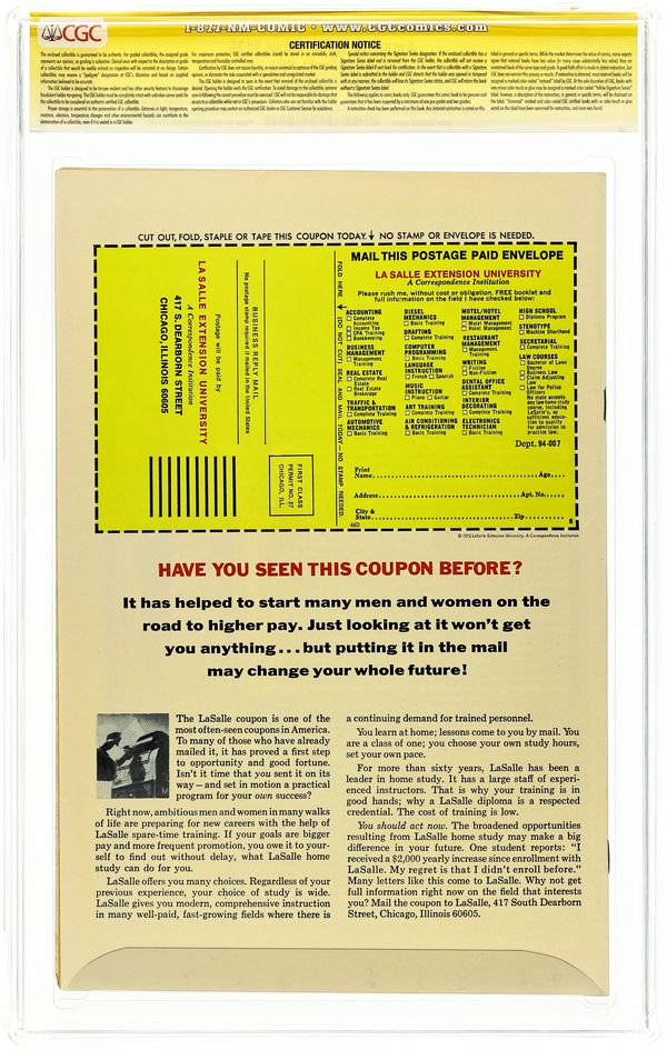 Ended Oct 14 2025 Bid History 19 bids Winning Bid $140 "The Kangaroo Bounces Back!" Script by Gerry Conway. Pencils by Ross Andru. Inks by Jim Mooney. Cover by John Romita. On a rooftop near the Empire State University campus, two advertising executives call out to Spider-Man! Surprisingly, they want the web-slinger to be the spokesman for a new car! At first Spidey declines, but later he changes his mind -- even though he must design the car himself. So it's time to pay a visit to Johnny Storm (aka the Human Torch) for help! Meanwhile, the Kangaroo is back in town. And after receiving a power boost from the creepy Dr. Jonas Harrow, he clashes with the wall-crawler at the Hudson Nuclear Laboratories! Beware of the radioactive isotopes! Lastly, Harry Osborn accepts his family legacy and assumes the mantle of the Green Goblin! Cameo appearances by Aunt May, Mary Jane Watson, Flash Thompson, Professor Miles Warren, John Jameson, Kristine Saunders, and J. Jonah Jameson. (Notes: The Kangaroo previously appeared in Amazing Spiderman #81. This story was reprinted in Marvel Tales 103.) 32 pages. Cover price $0.20. Grade: CGC 9.2 explanation of grade Condition: Used (collectible)