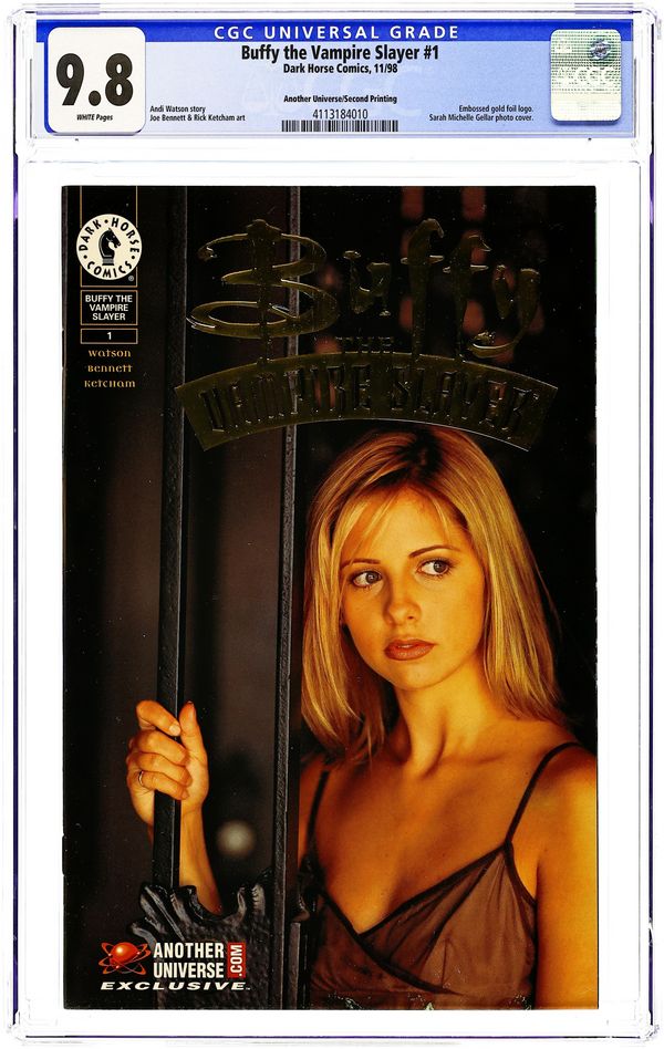 Tags: Gold Foil EditionPublished Nov 1998 by Dark Horse.Buffy the Vampire Slayer (1998 1st Series) 1D CGC 9.8 Gold Foil Another Universe Variant