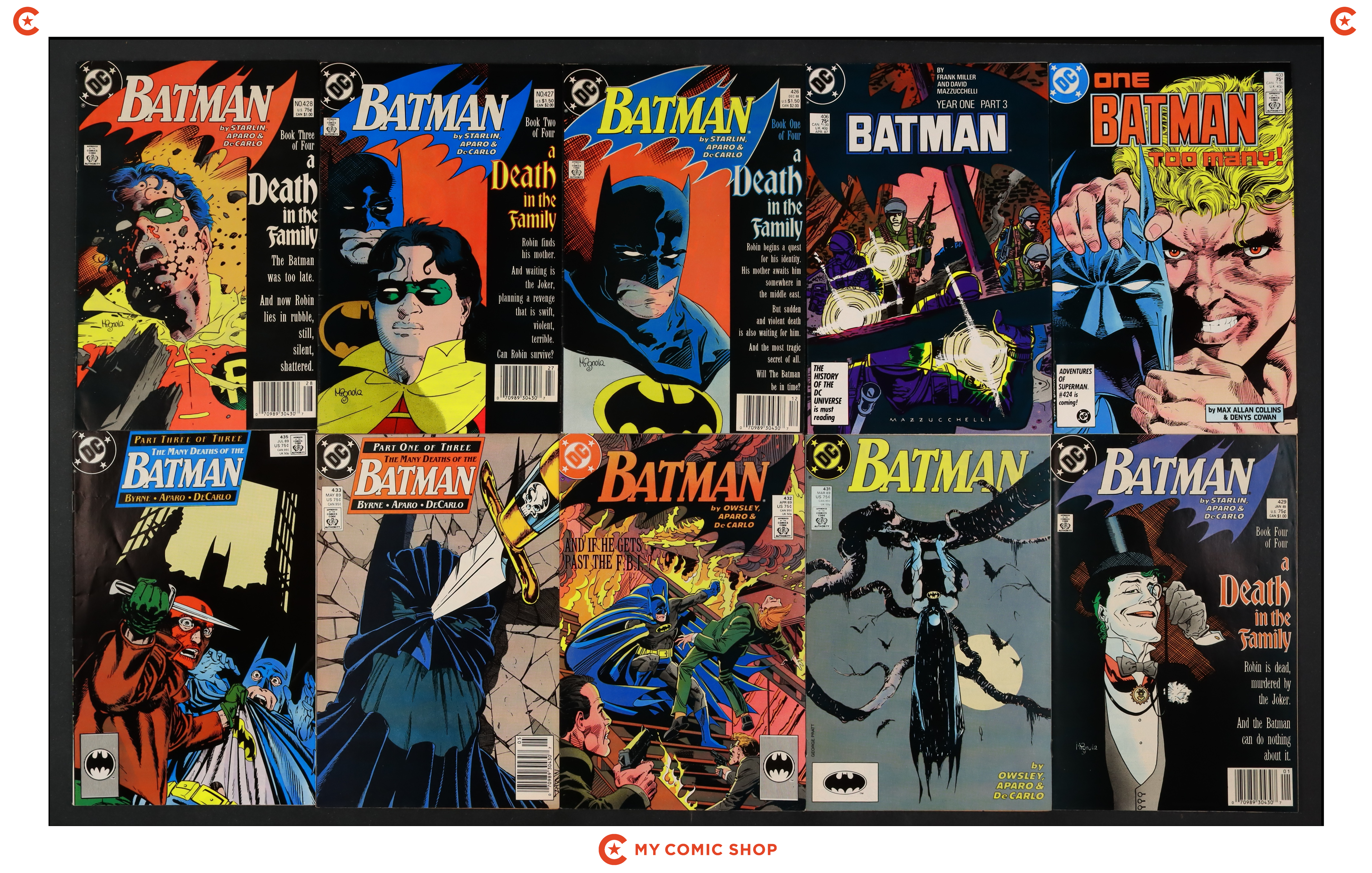 Issues 403, 406D, 426N-429N, 431D, 432, 433N, 435, 436D, 437, 438, 445 of Batman (1940). Most will grade in the VG/FN to FN/VF range.