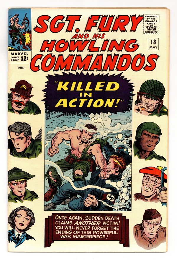Ended May 13 2025 Winning Bid $11 Cover pencils by Jack Kirby, inks by Chic Stone. "Killed In Action," script by Stan Lee, pencils by Dick Ayers and Jack Kirby, inks by Chic Stone and Carl Hubbell; Just when he is ready to ask Pamela to marry him, Fury and his Commandos have to go on a mission to sink a German ship. 36 pgs., full color. $0.12. Cover price $0.12. Grade: FN- 5.5 explanation of grade Condition: Used (collectible)