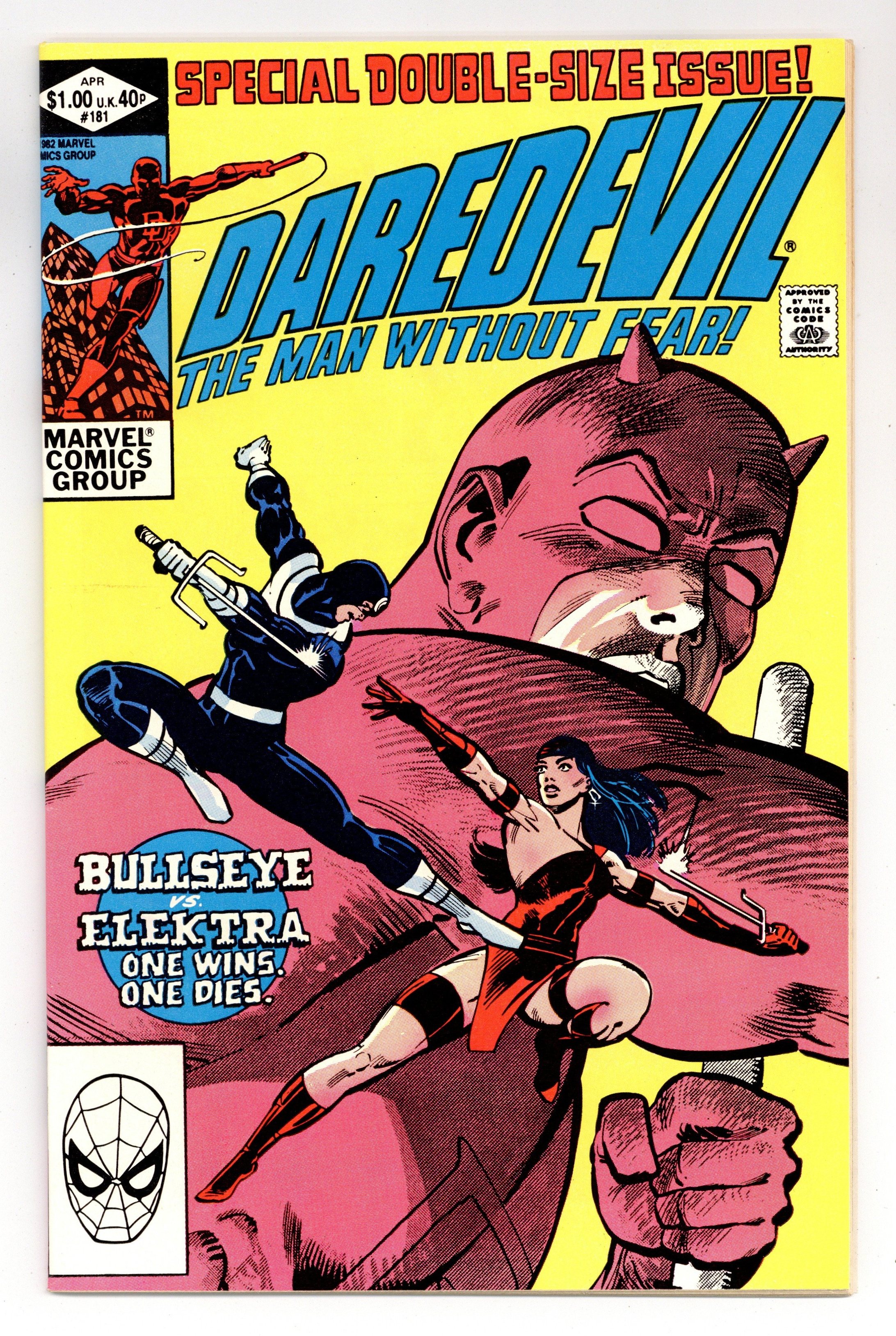 Ended May 12 2025 Winning Bid $24 Direct Edition. Cover pencils by Frank Miller, inks by Klaus Janson. Last Hand, script by Frank Miller, pencils by Frank Miller (breakdowns) and Klaus Janson (finished art), inks by Klaus Janson; Bullseye breaks out of prison; Elektra hunts down Foggy and is about to kill him until she recognizes him as Matt's buddy from college; Bullseye fights Elektra and kills her with her own sai; DD goes after Bullseye and ends up dropping him from a great height, breaking every bone in his body; Kingpin appearance; story narrated by Bullseye; story dedicated to the memory of Wally Wood 1927-1981. Full page pin-up ad for Marvel Fanfare, art by Michael Golden. Statement of Ownership average # of copies in preceding 12 months: 276,812 Cover price $1.00. Grade: VF 8.0 explanation of grade Condition: Used (collectible)