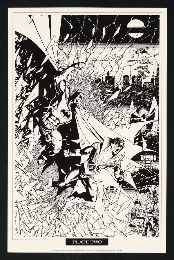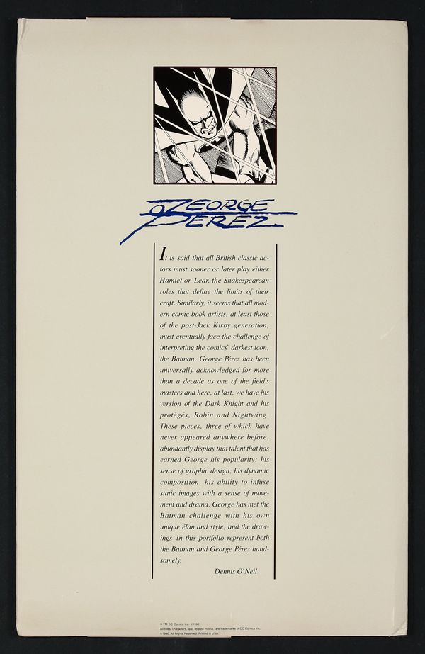 Ended May 5 2025 Winning Bid $25 featuring covers from Batman and the New Titans, plus three new illustrations, all starring the Dark Knight and/or Robin and Nightwing! 12 black and white plates that measure 10 1/4" x 15 3/4" by George Perez. Folder measures 10 3/4" x 17". Cover price $18.00. Grade: FN 6.0 explanation of grade Condition: Used (collectible)