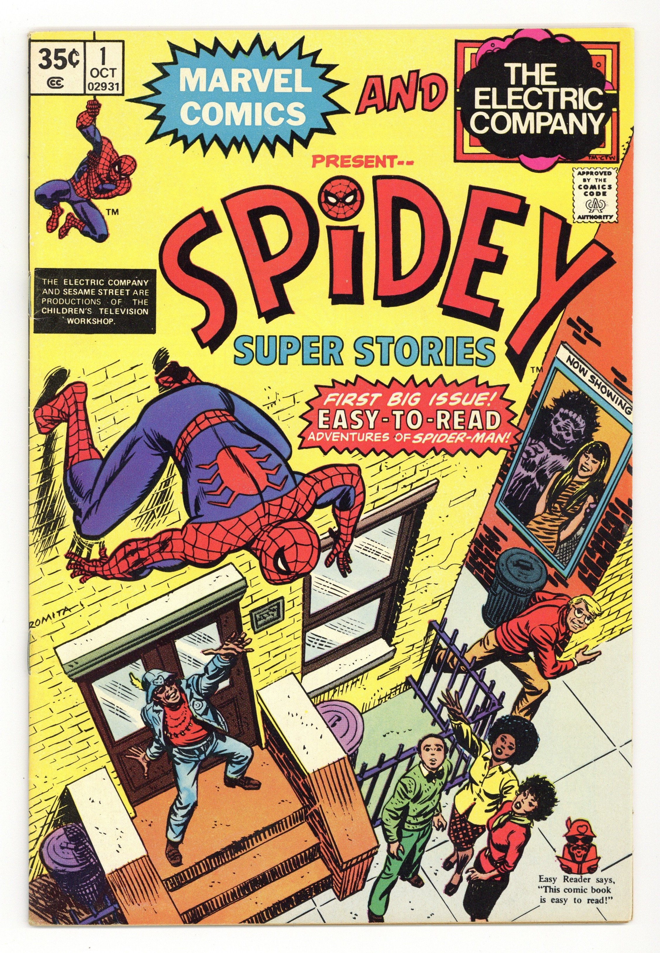 Ended May 20 2025 Winning Bid $35 Simplified Spider-Man stories. 11 page origin story, "Spider-Man is Born!" Script by Jean Thomas (with help from Bill Effros, based on the original story by Stan Lee), pencils by Winslow Mortimer, inks by Mike Esposito. Also in this issue: "Spidey Signs Up," "Spidey Meets the Spoiler" (based on the Electric Company script by Tom Whedon), and "Help! I'm Spider-Man!" (based on a story by Byron Preiss). John Romita Sr. cover. Cover price $0.35. Grade: FN 6.0 explanation of grade Condition: Used (collectible)