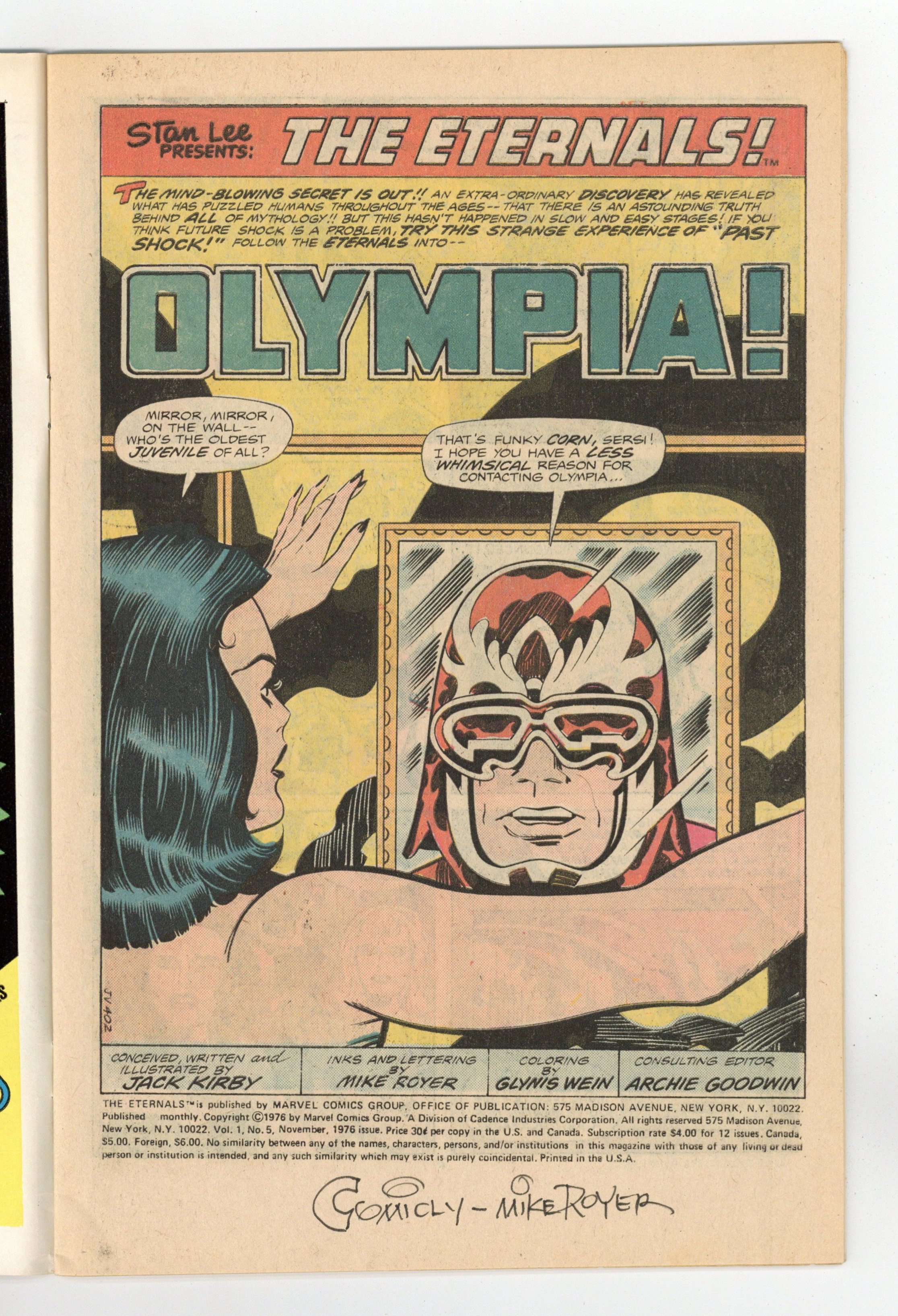 Ended May 27 2025 Winning Bid $6 Revealed in this issue--the power of "Olympia!" Written by Jack Kirby. Pencils by Jack Kirby. Inks by Mike Royer. Ikaris has been captured by demonic Deviants, but can even these monsters find a way to kill an immortal? Meanwhile, Makarri and Sersi regroup at the mythical homeland of the Eternals – Olympia! The secret is out! Man has discovered the truth behind mythology...it's all real! Notes: 1st appearance of Domo, Thena, and Zuras. Cover price $0.30. Grade: FN 6.0 explanation of grade Condition: Used (collectible)