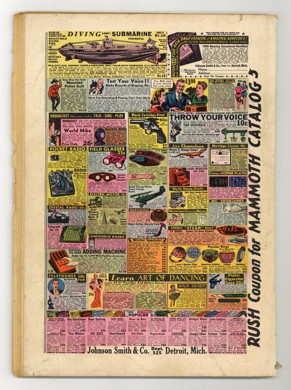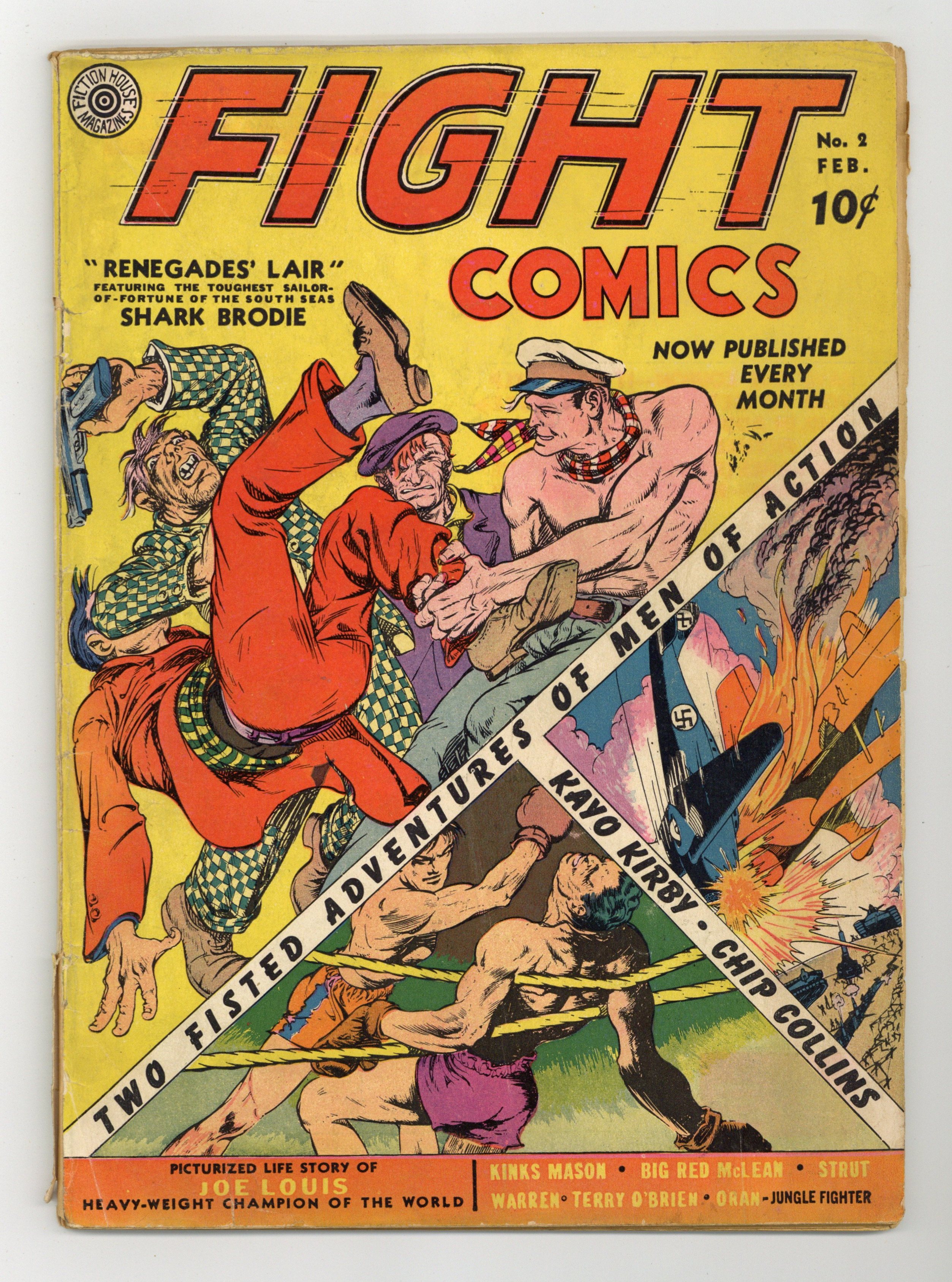 Cover art by Will Eisner. "Renegades' Lair," script by Will Eisner, art by George Tuska (as George Aksut); Shark Brodie meets plenty of trouble on an island and tangles with Skinny and his gang. "The Life Story of Joe Louis"; non-fiction story about the famous boxer. Untitled story, art by Leonard Frank; Saber (Spy Fighter) vs. The Antarcticans. Untitled Kayo Kirby story, art by William Wills. Untitled story, art by Steve Broder; Another ship sinks in Gulf; Kinks Mason vs. The Weed People and their Queen. Untitled story, script and art by Fletcher Hanks; Lumberjack Big Red McLane tangles with The Red River Lumber Co. Untitled story; Oran of the Jungle encounters Jim Murphy and a gang of crooks. Untitled Terry O'Brien Gang Smasher story. "Corporal! Hey....Corporal Warren!", script by Klaus Nordling (as Ed Norris), art by Klaus Nordling; Cpl. Strut Warren vs. The Japanese. Untitled story; Chip Collins vs. Chung Hang. 68 pgs., full color. Cover price $0.10. Grade: PR 0.5 explanation of grade Condition: Used (collectible)