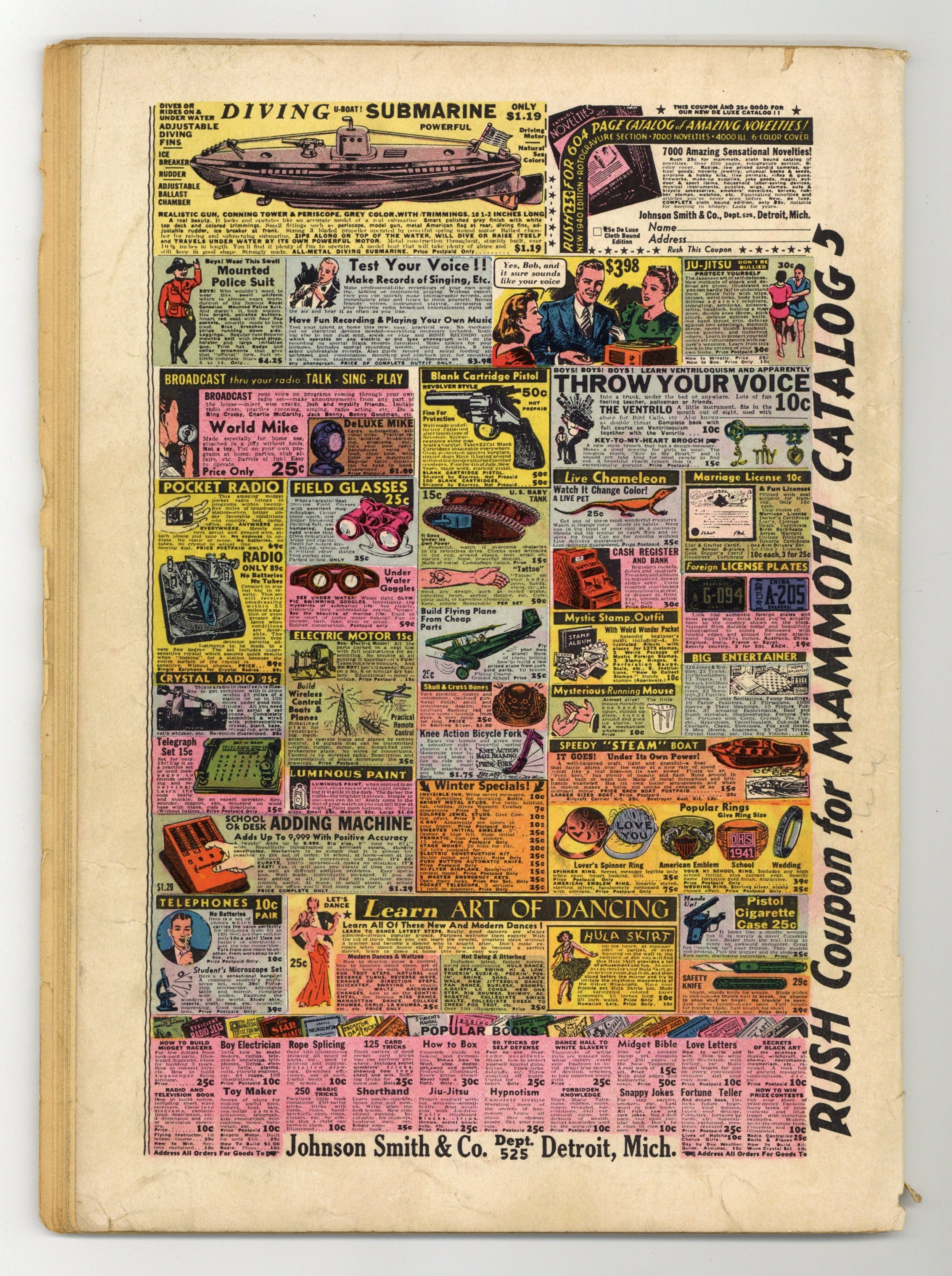 - INCOMPLETE. Centerfold missing (affects Kayo Kirby and Kinks Mason stories). 2.5" Spine split from bottom. Cover and two center wraps detached.