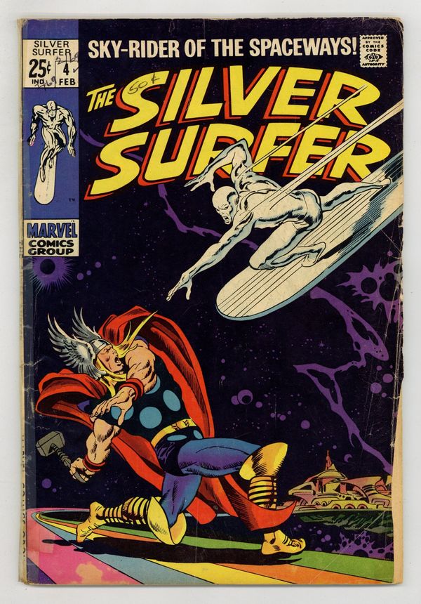 "The Good, the Bad, and the Uncanny!" Guest-starring Thor. Written by Stan Lee. Art by John Buscema and Sal Buscema. Cover by John Buscema. When the Silver Surfer ventures to fabled Asgard, home of the Norse Gods, a misunderstanding sets the Sentinel of the Spaceways against the mighty God of Thunder. It's the Power Cosmic vs. godly might. It's Thor vs. the Silver Surfer in a battle that will truly shake the heavens! Includes the Watcher back-up "The Terror of Tim Boo Ba." Story by Stan Lee. Art by Howard Purcell and Paul Reinman. Low distribution. 68-page giant. Cover price $0.25. Grade: FR 1.0 explanation of grade Condition: Used (collectible)