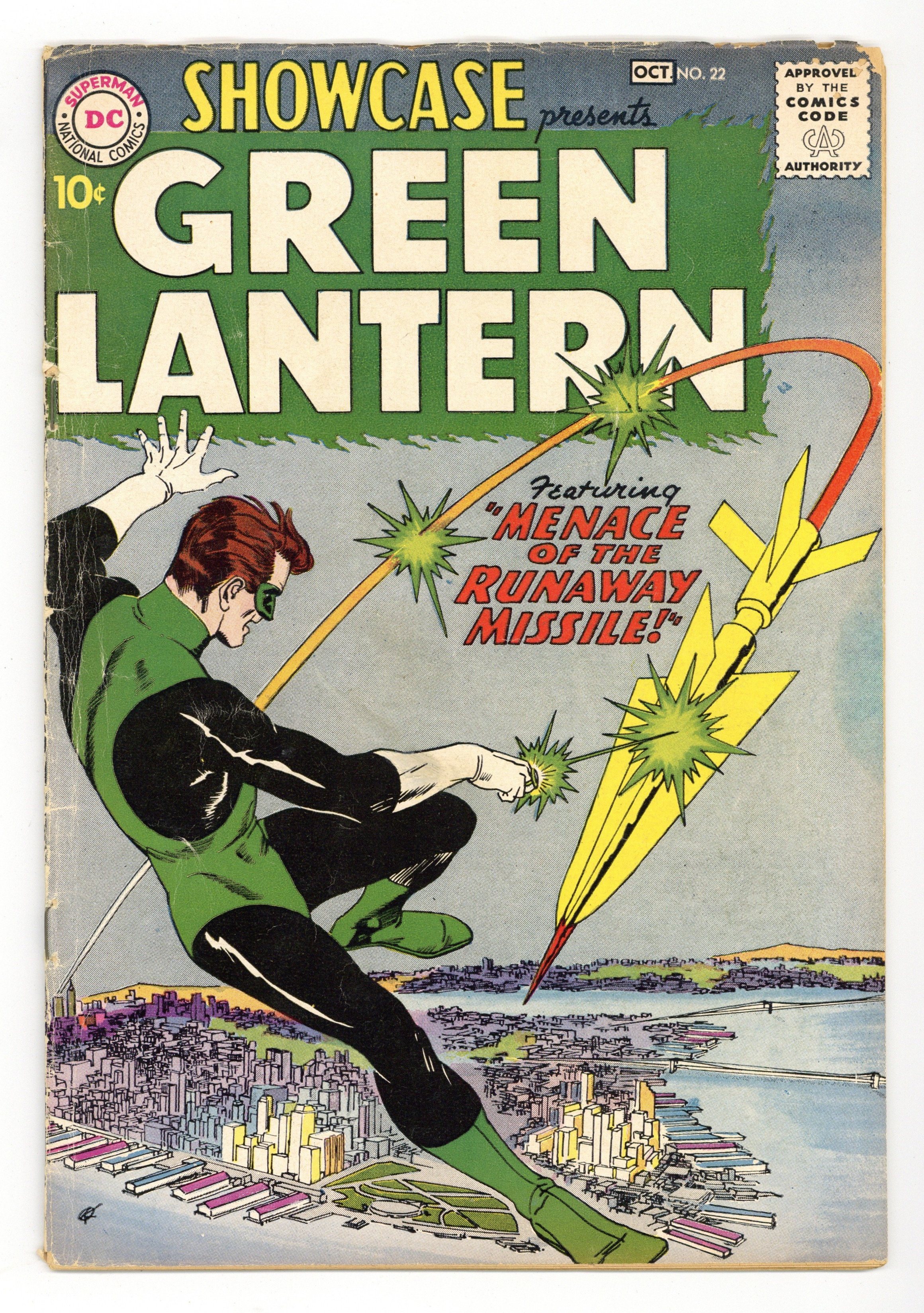 Origin and 1st appearance of Hal Jordan (Silver Age Green Lantern). Cover and interior art by Gil Kane. SOS Green Lantern; Hal Jordan is selected by the power ring of Abin Sur to become a Green Lantern. Secret of the Flaming Spear!; Saboteurs try to crash a new experimental aircraft created by Ferris Aircraft. Menace of the Runaway Missile!; Green Lantern stops a missile launched by Dr. Parris at a government Hydrogen Power facility. Scripts by John Broome. 36 Pages, Full Color. Cover price $0.10. Grade: GD+ 2.5 explanation of grade Condition: Used (collectible)