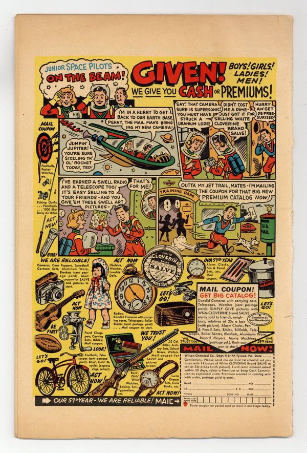 Cover photo of Rhonda Fleming and Fernando Lamas from the movie "Jivaro." Stories and art by Frank Frazetta, Jack Berrill, and Al Thompson. Romance comics and movie stars of yesteryear from Famous Funnies. Kathy leaves her small town and her fiance Bart to become a model in the big city, in a story featuring early art by comics legend Frank Frazetta. Boxing champ Frankie faces trouble in the ring and romantic woes at home. Joan fears being untrue to her boyfriend when she meets Russ during a weekend getaway. Also featuring a full-page vintage ad for "Space Phones" walkie-talkies. The Wrong Road; Misguided Love; Champ or Chump; Weekend of Worry!; Dashing Fernando Lamas "Our Cover Man"; Beautiful Rhonda Fleming "Our Cover Girl". 32 pages, Full Color. Cover price $0.10. Grade: GD/VG 3.0 explanation of grade Condition: Used (collectible)