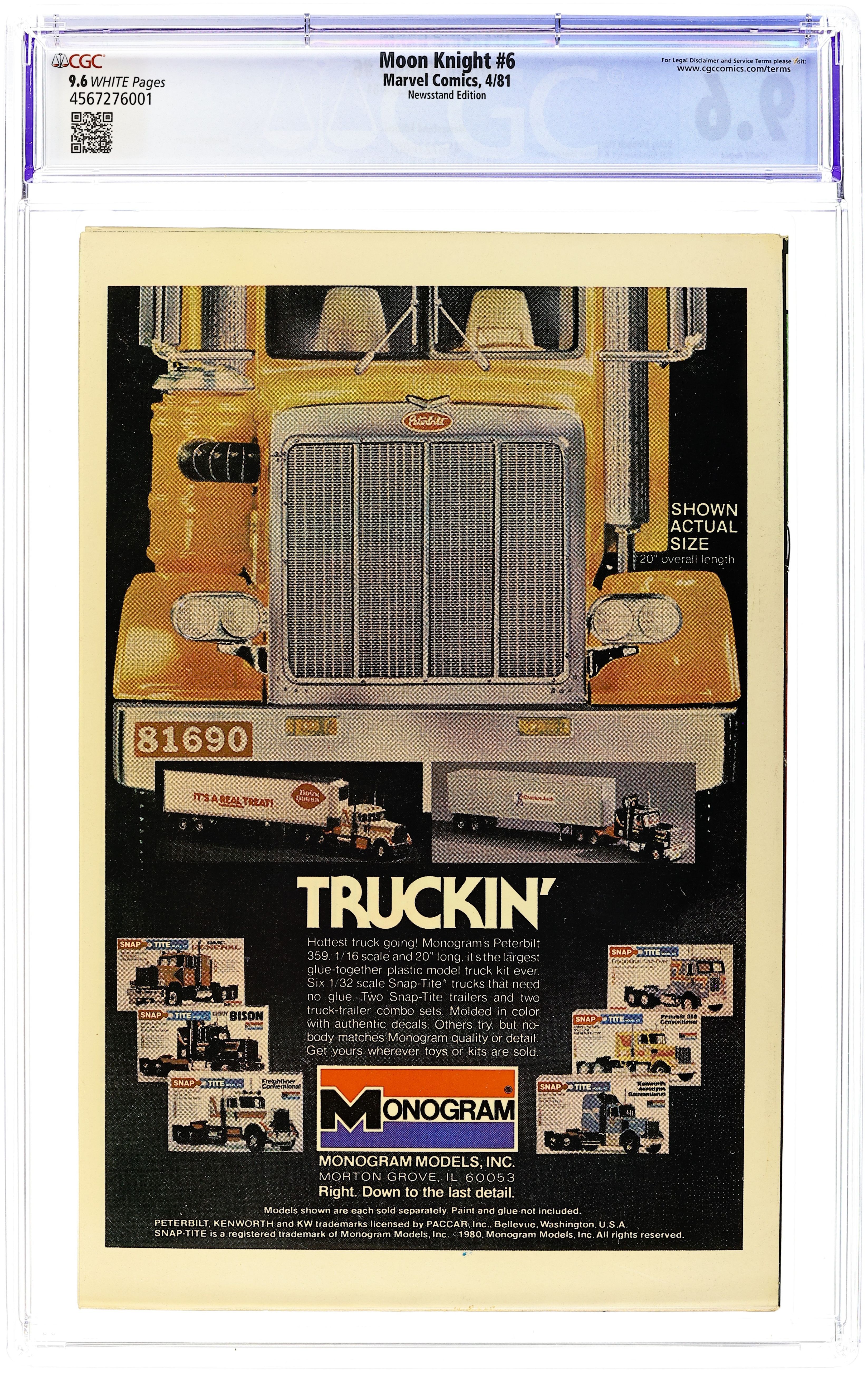 Newsstand Edition. "White Angels!" Written by Doug Moench with Bill Sienkiewicz and Klaus Janson. Moon Knight races against the clock to stop a human sacrifice! 32 pages, FC. Cover price $0.50. Grade: CGC 9.6 explanation of grade Condition: Used (collectible)