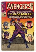 Cover pencils by Jack Kirby and Don Heck (insets), inks by Frank Giacoia. First appearance of the Swordsman and the origin of Hawkeye in "The Coming of... the Swordsman!", script by Stan Lee, pencils by Don Heck, inks by Dick Ayers; The Swordsman infiltrates the Avenger's base and Scarlet Witch and Quicksilver attack him; He then admits he was testing them and wants to apply for membership; Captain America intervenes with information saying he is a wanted man and the Swordsman escapes; Hawkeye explains that the Swordsman used to be his tutor when he was in the circus; Meanwhile, in Nick Fury's office in Washington D.C HYDRA agents find a letter from Captain America; They later discard it as trash; It explained how Captain America wanted to work for S.H.I.E.L.D.; A mobster finds it and gives it to the Swordsman; A trap is laid for Captain America; He then leaves to meet with "Nick Fury"; Hawkeye finds out about the plan and gathers the other Avengers to help him; Captain America battles the Swordsman and gets captured before the others can arrive to help. Avengers Roll Call: Captain America, Hawkeye, Quicksilver, and the Scarlet Witch. Letter to the editor from Cary Burkett. 36 pgs., full color. $0.12. Cover price $0.12. Grade: VG 4.0 explanation of grade Condition: Used (collectible)