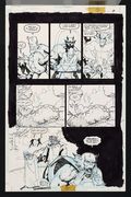 With the pure soul of Lyndon P. Baines saved from his wrongful condemnation, "All is well with Hell!"- and Lobo and Etrigan are ready to get paid by their angelic benefactor! Signed by the artist with embossed stamp. Pencil and ink on DC Comics art board with semi-transparent overlay affixed at top with tape. The art attached to the overlay is hand drawn. 11" x 17".