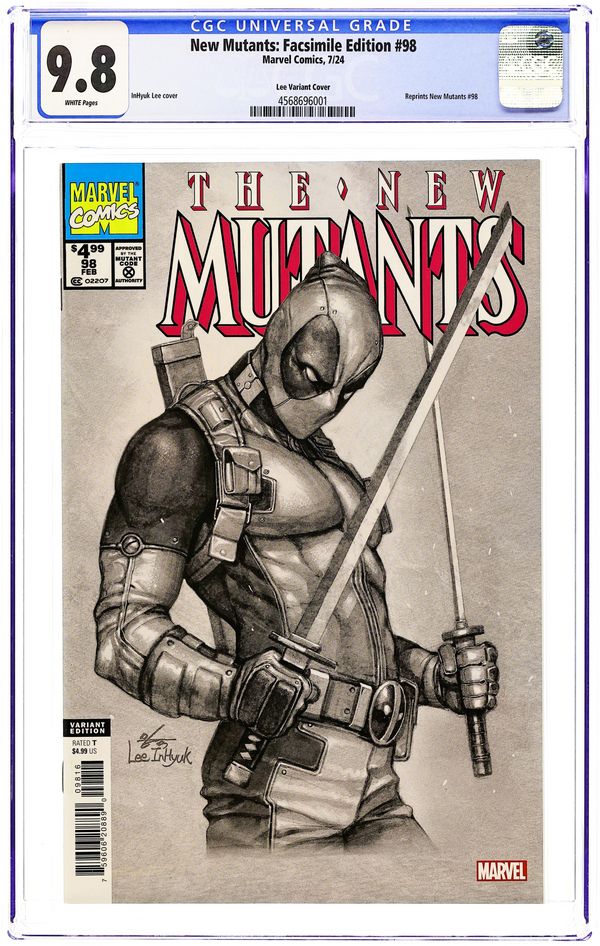Ended Jun 10 2025 Winning Bid $70 Limited 1 for 25 Retailer Incentive Variant Cover. Written by Rob Liefeld; Fabian Nicieza. Art by Rob Liefeld. Cover by Inhyuk Lee. The dynamic debut of Deadpool! It's the beginning of the end for the New Mutants as Cable continues his reinvention of the squad into his own paramilitary force! But their numbers are dwindling - and Rictor's about to be the next member making his exit! Meanwhile, Deadpool makes his entrance - but he's not looking to join. He's been hired to kill Cable! With swords, guns, an accelerated healing factor and an unstoppable mouth, this merc is set to make a big splash! But who is the new mystery woman riding to the rescue? Cable called, and she came. Enter: Domino! Prepare for high-octane mutant action from the bombastic 1990s! It's one of the all-time great Marvel comic books, boldly re-presented in its original form, ads and all! Reprinting NEW MUTANTS (1983) #98. 32 pages, full color. Rated T Cover price $4.99. Grade: CGC 9.8 explanation of grade Condition: Used (collectible)