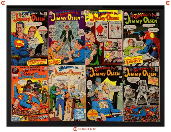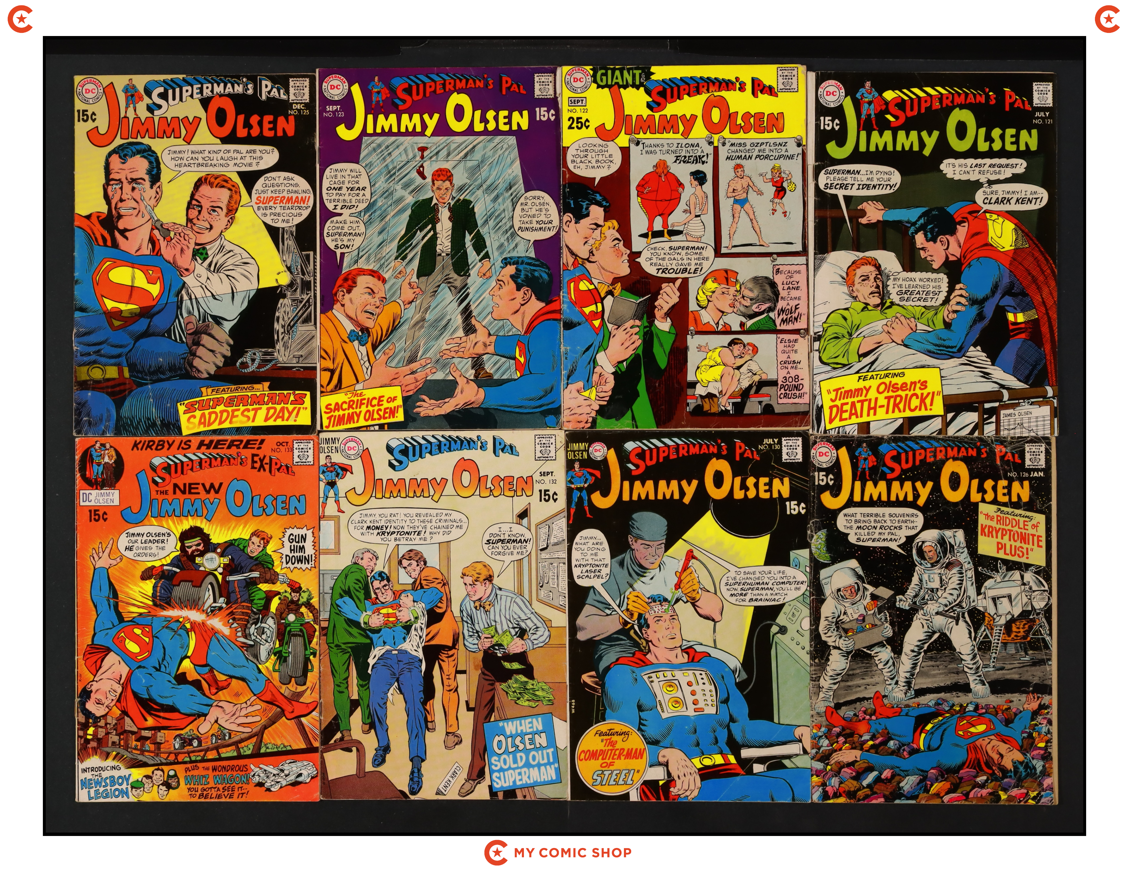 Issues 103, 105, 107-109, 111, 114, 116-118, 121-123, 125, 126, 130, 132, 133 of Superman's Pal Jimmy Olsen (1954). Most will grade in the FR to GD/VG range.