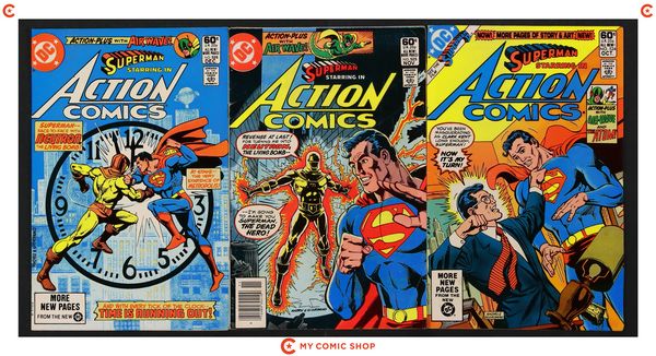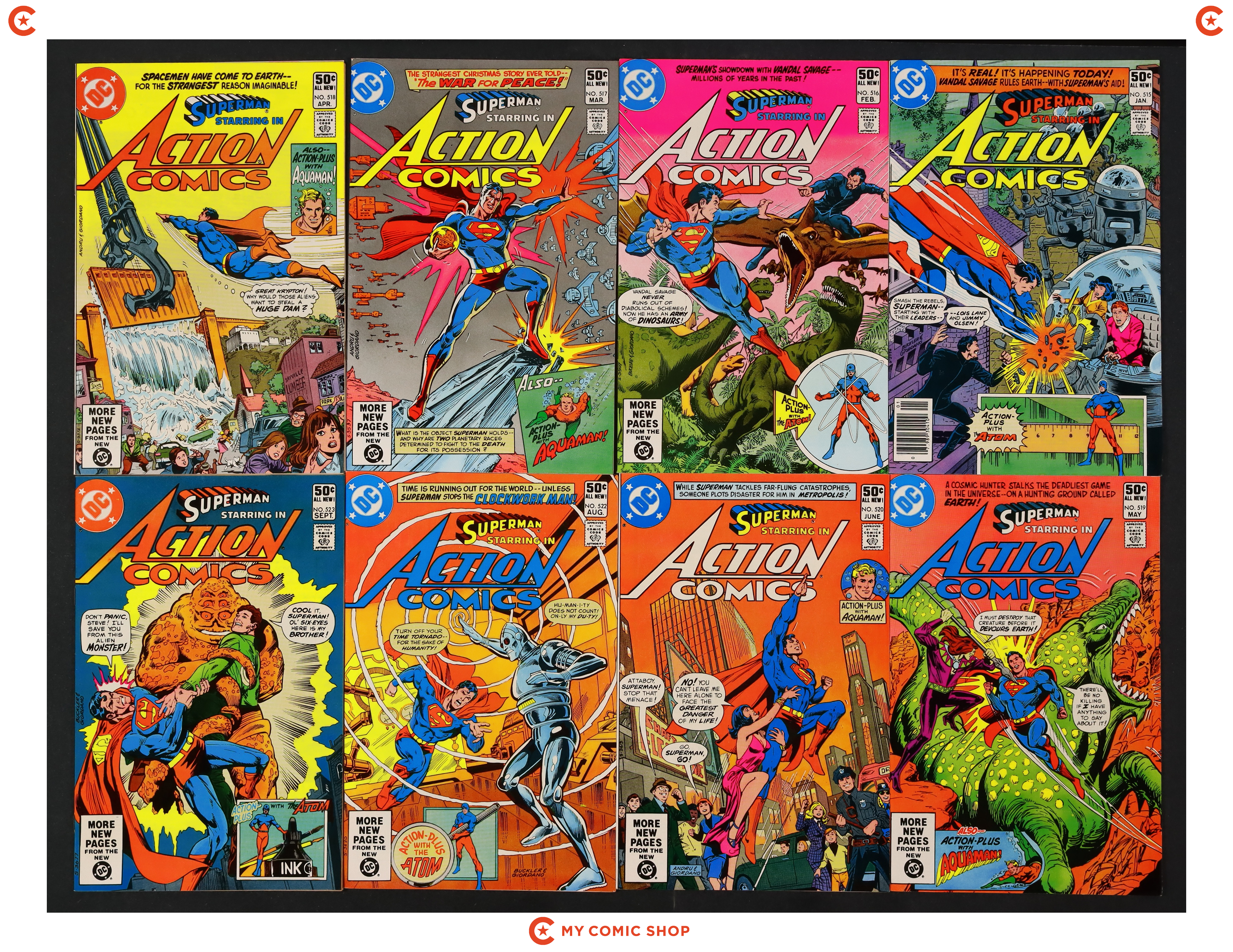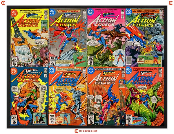 Issues 515-520 and 522-526 of Action Comics (1938 DC). Most will grade in the VF to FN range with a couple grading VG.