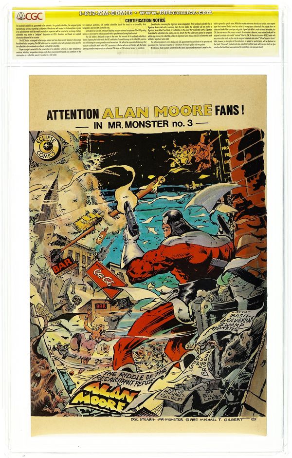 Ended Jun 18 2025 Winning Bid $54 Cover by Garry Leach. Written by Alan Moore. Art by Garry Leach and Alan Davis. In this issue: Miracleman takes on Johnny Bates (Kid Miracleman), grown up and gone bad, in "Dragons" by Alan Moore and Garry Leach, reprinted from Warrior (1982 Quality) UK #5; "Fallen Angels, Forgotten Thunder" by Moore, Alan Davis and Leach, reprinted from Warrior (1982 Quality) UK #6; "Secret Identity" by Moore, Davis and Leach, reprinted from Warrior (1982 Quality) UK #7; and "Blue Murder" by Moore and Davis, reprinted from Warrior (1982 Quality) UK #8. Plus: 2-page article "M*****MAN: Full Story and Pics" by Alan Moore, explaining the background of the British Marvelman feature, which is reprinted here as Miracleman for copyright reasons. 32 pages, full color. Cover price $0.75. Grade: CGC 9.4 explanation of grade Condition: Used (collectible)