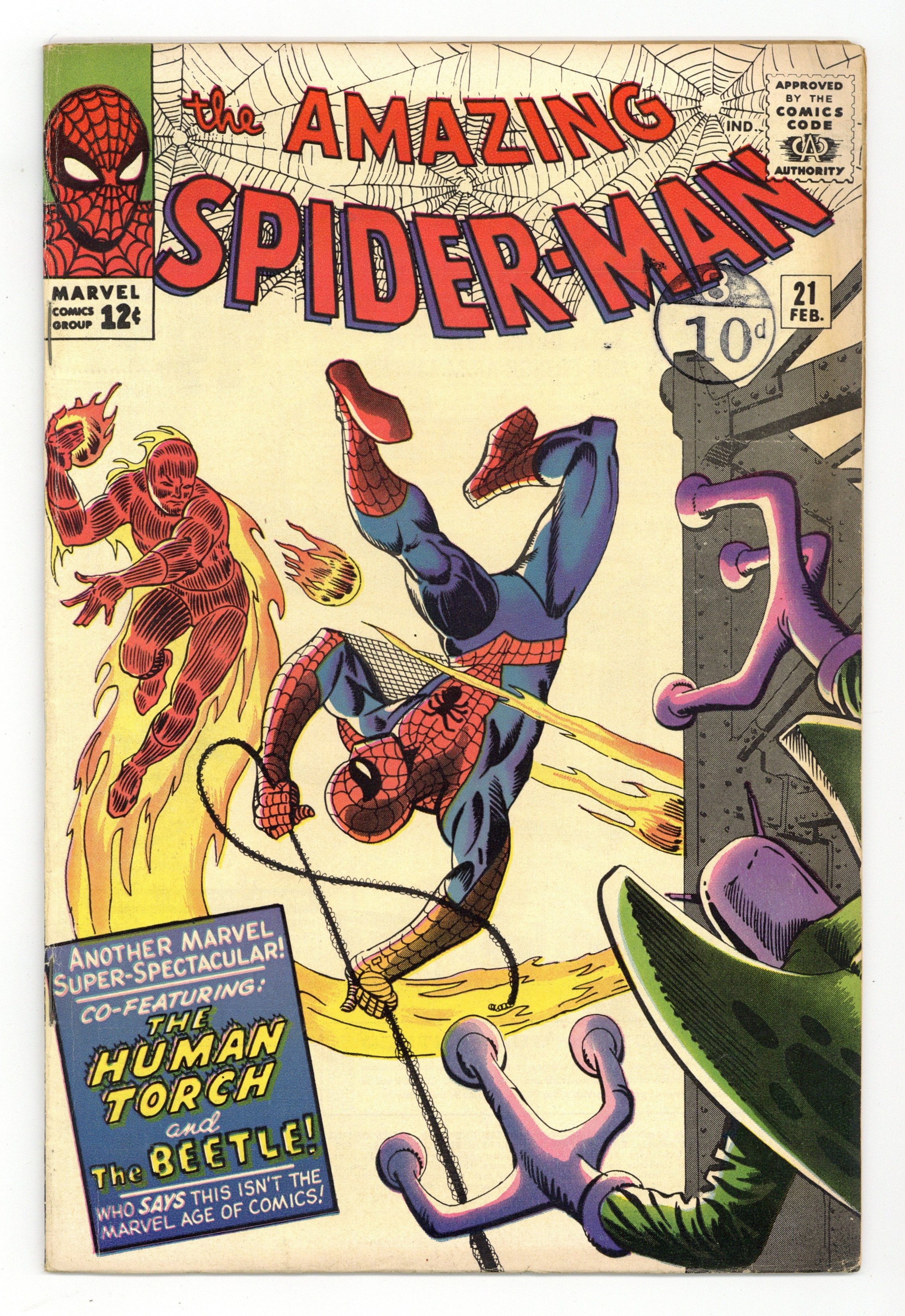 Ended May 29 2025 Winning Bid $82 Cover art by Steve Ditko. Second appearance of the Beetle in Where Flies the Beetle...!, script by Stan Lee, art by Steve Ditko; after getting out of jail, Abner Jenkins dons his Beetle guise and prepares for revenge on the Human Torch; drama between Johnny Storm and Doris Evans and Peter Parker and Betty Brant; Human Torch teams with Spidey against Beetle. Reprinted in Marvel Tales # 16 and 159. Spider-Man pin-up by Ditko. 36 pgs. $0.12. Cover price $0.12. Grade: VG 4.0 explanation of grade Condition: Used (collectible)