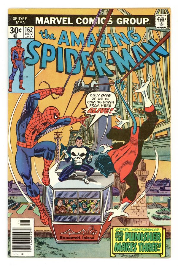 Ended May 20 2025 Winning Bid $16 "Let the Punisher Fit the Crime!" Part 2 of 2. Guest-starring Nightcrawler and the Punisher. Script by Len Wein. Art by Ross Andru (breakdowns), Mike Esposito (finishes), and Dave Hunt (backgrounds). Cover by Ross Andru and John Romita. After a scuffle atop the Roosevelt Tramway; the Punisher, Nightcrawler, and Spider-Man come to a meeting of the minds! The trio realizes that none of them are the lethal sniper terrorizing the city! And they vow to catch the mysterious gunman before his next kill! Acting on a tip; the web-slinger, Punisher, and Nightcrawler converge on a street festival to smoke out the shooter! Can the heroes solve the killer's deadly puzzle? Or perhaps better stated...his Jigsaw puzzle? First appearances of Dr. Marla Madison and Jigsaw. Cameo appearances by Harry Osborn, Flash Thompson, Mary Jane Watson, and J. Jonah Jameson. (Notes: The Punisher appears next in Amazing Spider-Man 174. Jigsaw returns in Amazing Spider-Man 188. This story was reprinted in Marvel Tales 215.) 36 pages. Cover price $0.30. Grade: VG+ 4.5 explanation of grade Condition: Used (collectible)