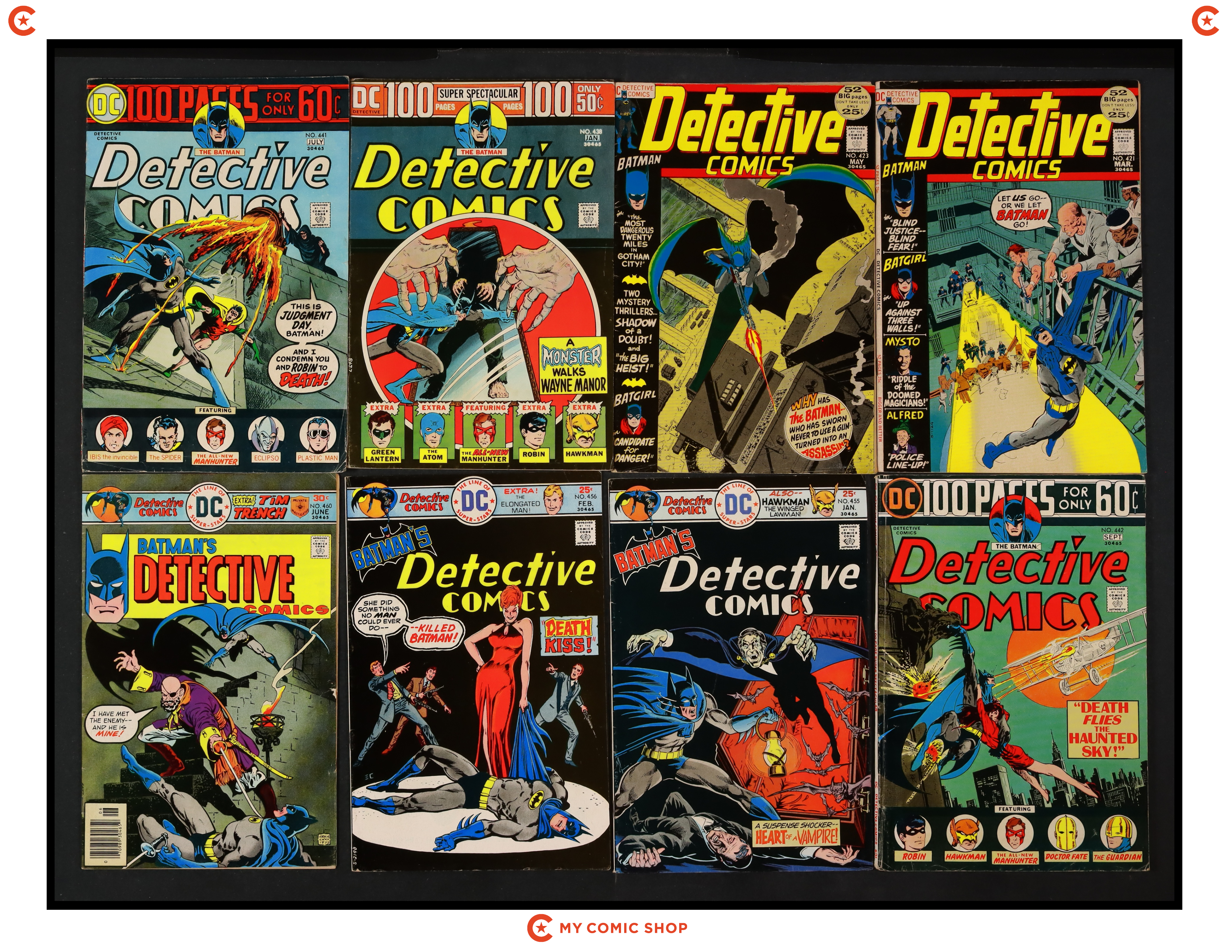 Issues 421, 423, 438, 441, 442, 455, 456, 460, 464, 484, 486 of Detective Comics (1937 1st Series). Most will grade in the GD/VG to VG/FN range.