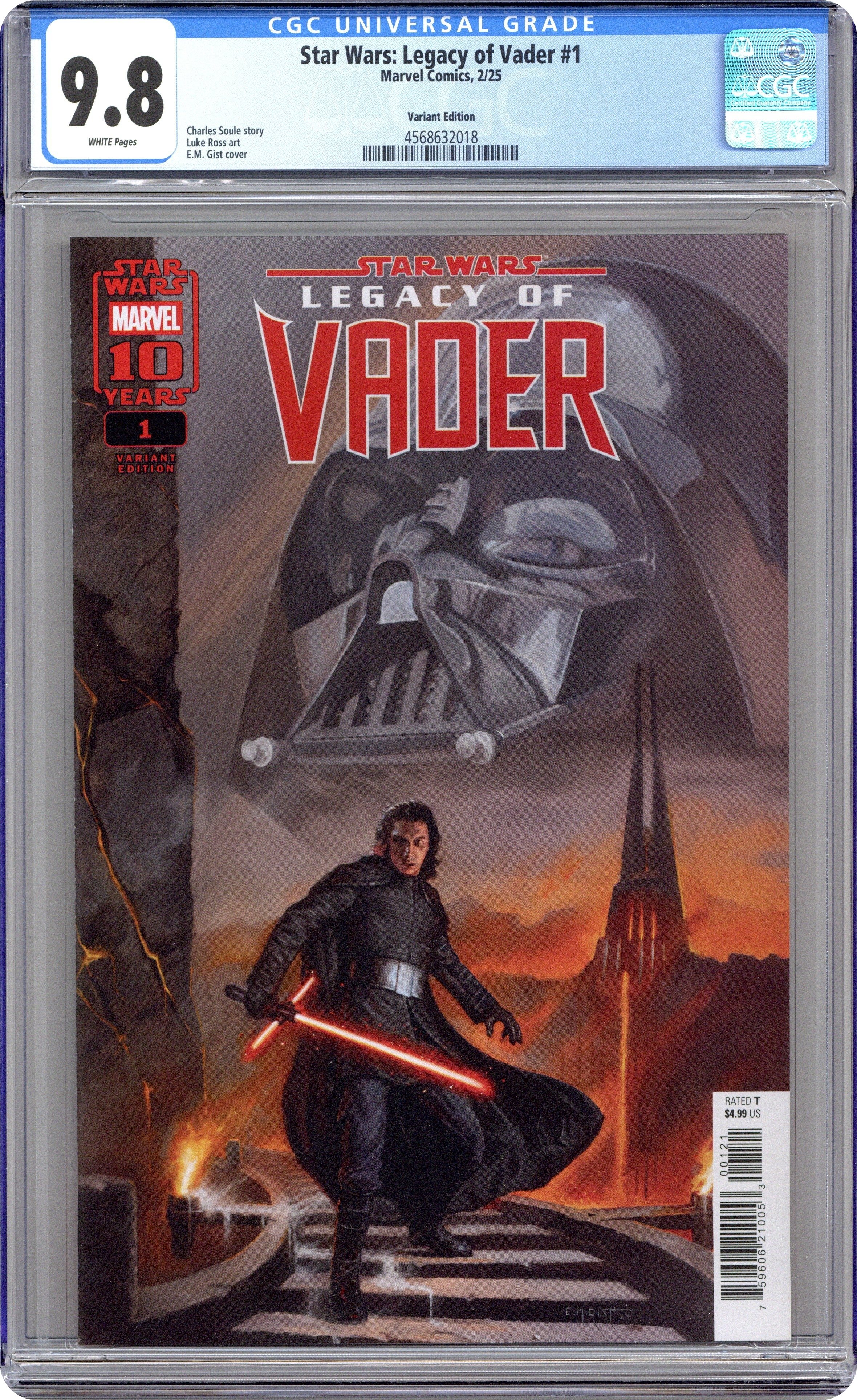 Ended Jun 22 2025 Winning Bid $46 Written by Charles Soule. Art by Luke Ross. Cover by E.M. Gist. DARTH VADER'S SHADOW EXTENDS INTO...THE RISE OF THE FIRST ORDER! The reign of SUPREME LEADER KYLO REN begins! Kylo's dark obsession leads him to MUSTAFAR! What secrets does FORTRESS VADER hold for the young tyrant? And what face from the past will guide him on his quest? 32 pages, full color. Rated T Cover price $4.99. Grade: CGC 9.8 explanation of grade Condition: Used (collectible) unless item is a new release