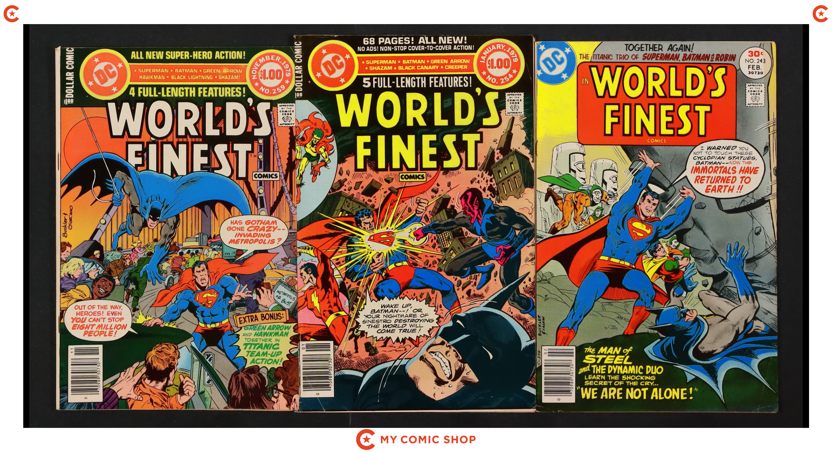 Issues 230, 234, 235, 242, 243, 254, 259 of World's Finest (1941). Most will grade in the VG- to VG/FN range.