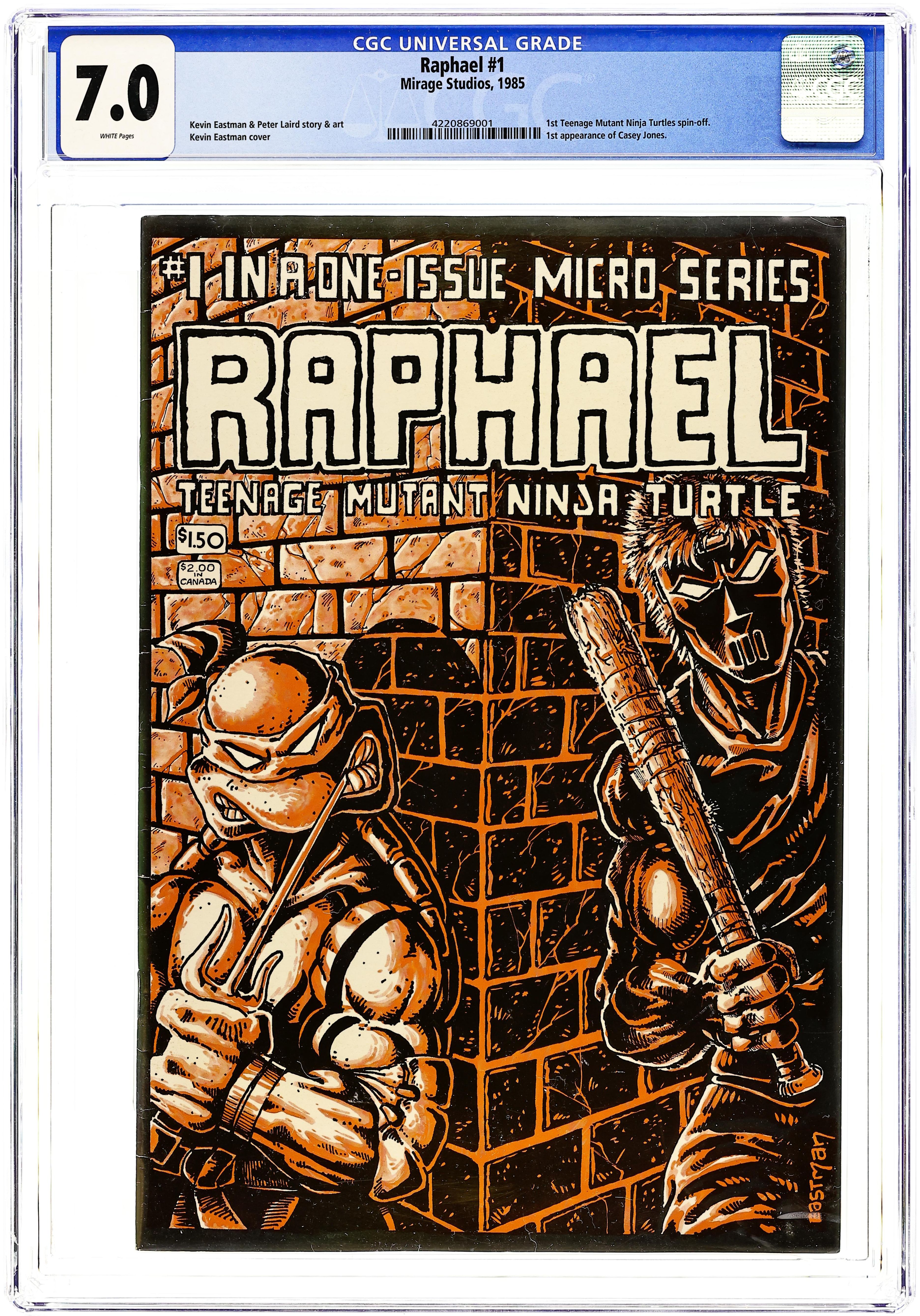 Published 1985 by Mirage Studios.Raphael (1985 Mirage Studio) Teenage Mutant Ninja Turtles 1 CGC 7.0 Eastman Variant 1st Printing