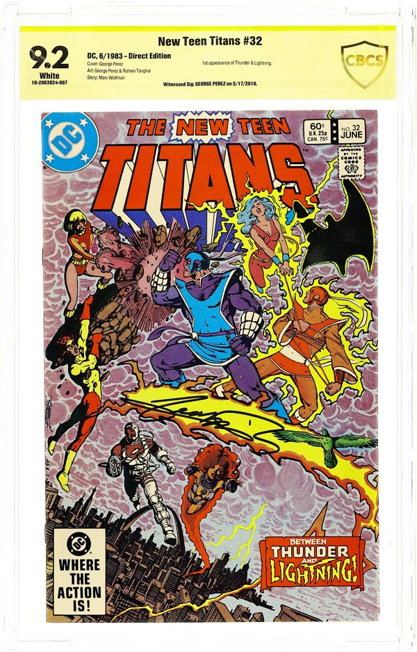 Ended Jun 23 2025 Winning Bid $67 The Titans head to St. Louis to confront the destructive duo of "Thunder and Lightning!" Story thread picks up again in #36. Script by Marv Wolfman, layouts by George Perez, inks by Romeo Tanghal. Speedy, Frances Kane. Perez cover. Cover price $0.60. Grade: CBCS 9.2 explanation of grade Condition: Used (collectible)
