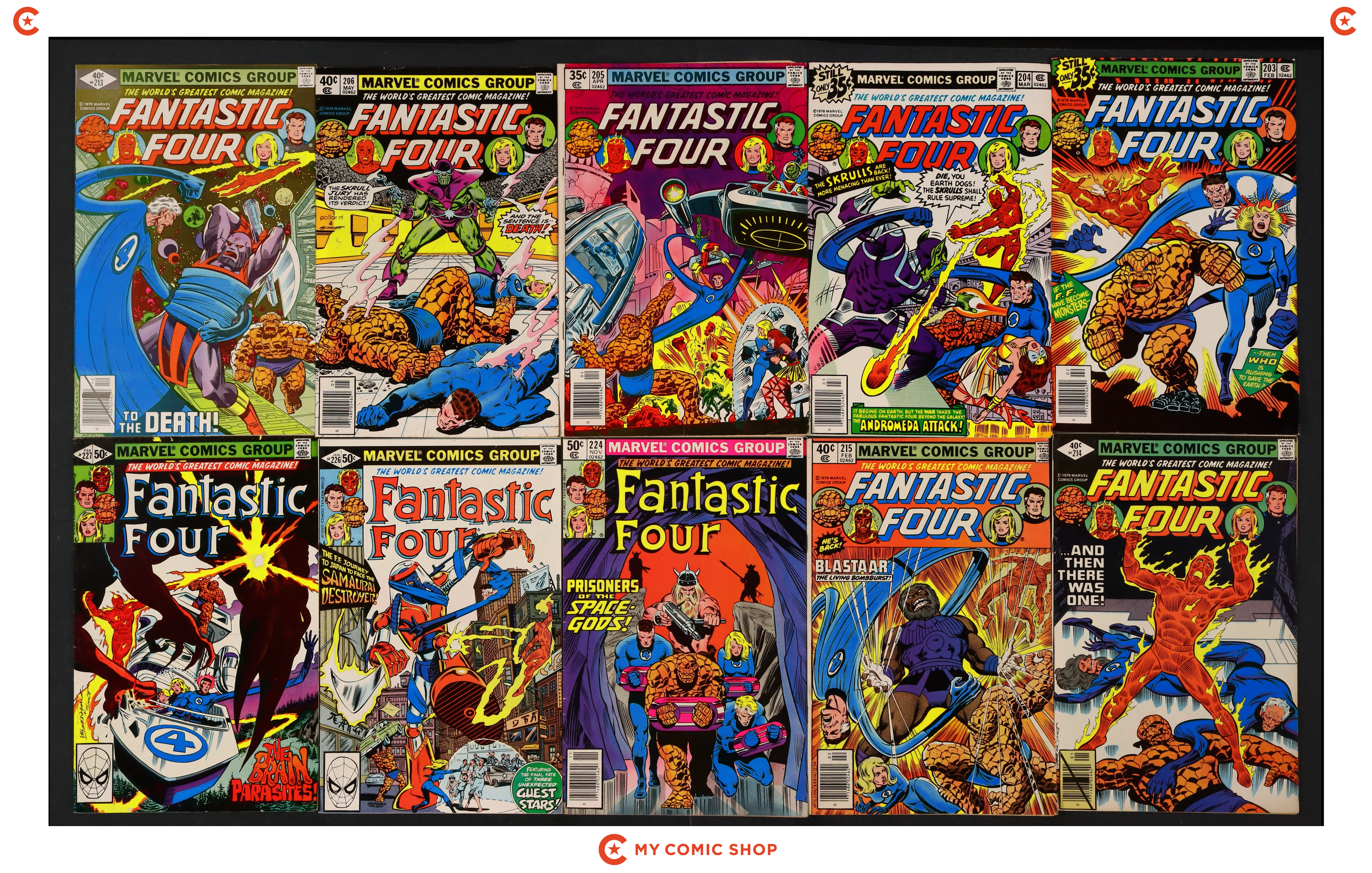 Issues 203-206, 213D, 214, 215N, 224, 226, 227 of Fantastic Four (1961 1st Series). Most will grade in the VG to FN+ range.