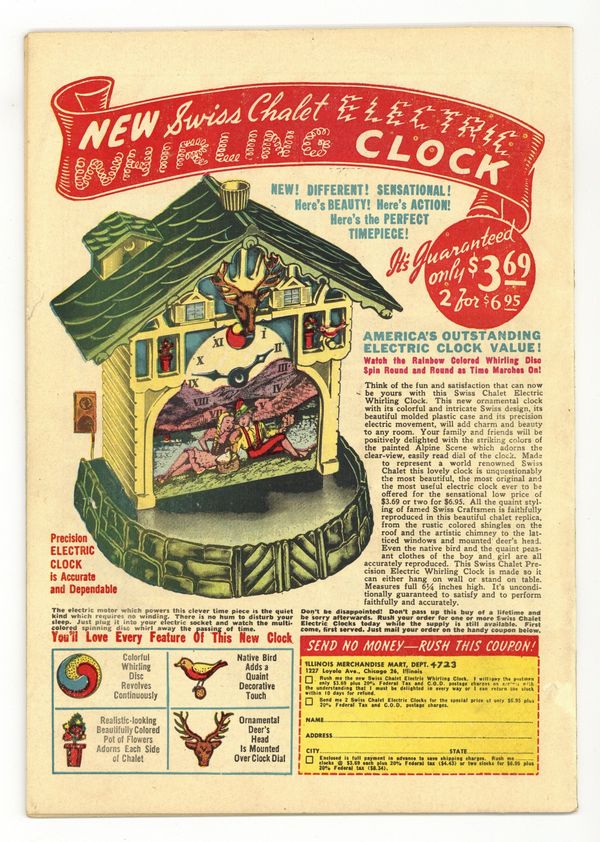 Ended Jul 14 2025 Bid History 9 bids Winning Bid $280 Cover by Dale Messick. Stories and art by Dale Messick and others. The adventures of Dale Messick's fearless comic strip hero, redheaded reporter Brenda Starr. Brenda is kissed by a handsome stranger on New Year's Eve, just before she leaves on a vacation. Brenda, Larry and Flurry investigate a mysterious lodge in the country owned by Professor Squell. A master violinist uses his touring as a cover for his crimes. Silver Lining in Sun Valley; Adventure Unlimited; The Crying Corner; Brenda a Bride?; Reward!: The Case of the Fatal Fiddle! 36 pages, Full Color. Cover price $0.10. Grade: VG 4.0 explanation of grade Condition: Used (collectible)