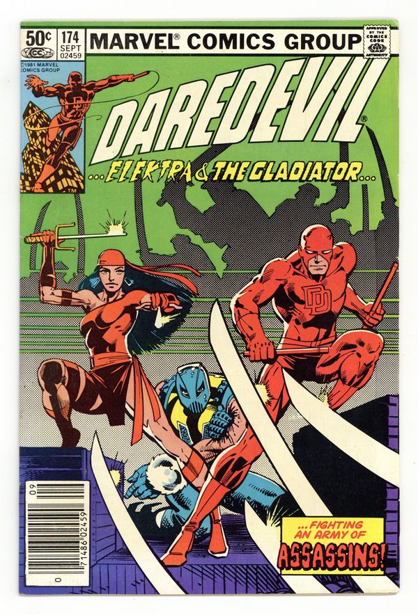 Ended Jul 28 2025 Bid History 9 bids Winning Bid $26 Newsstand Edition. Cover pencils by Frank Miller, inks by Klaus Janson. Elektra returns in The Assassination of Matt Murdock, script by Frank Miller, pencils by Frank Miller (breakdowns) and Klaus Janson (finished art), inks by Klaus Janson; Kingpin secretly hires the Hand to take out Matt Murdock, but Elektra and Gladiator get in the way; When the Hand blows up his law office, DD loses his radar sense due to the blast; 1st appearance of The Hand (ninja assassins). 36 pgs. Cover price $0.50. Cover price $0.50. Grade: FN+ 6.5 explanation of grade Condition: Used (collectible)