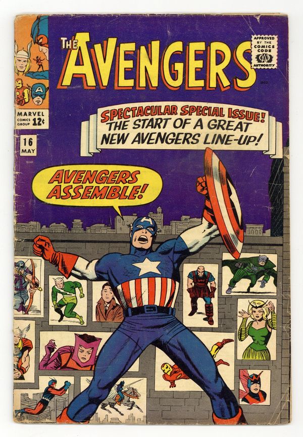Ended Jun 16 2025 Winning Bid $51 "The Old Order Changeth!" Script by Stan Lee, layouts by Jack Kirby, finished art by Dick Ayers. New line-up for Avengers: Captain America, Thor, Iron Man, Wasp, Giant Man, Hawkeye, Quicksilver, Scarlet Witch, and Rick Jones. First appearance in Avengers of Edwin Jarvis, the butler (in Avengers). Villains: The Melter, the Enchantress, the Executioner, the second Black Knight, and Zemo's Mercenaries (Erik Josten). Guest Appearances by the Sub-Mariner, the Black Widow, the Mole Man, Kang, and Immortus. Cameos by Magneto, Mastermind, the Toad, Beast, Iceman, Angel (on loan from the original X-Men), and Hulk. Reprinted in Marvel Triple Action # 10. Kirby/Sol Brodsky cover. 36 pages, full color. Cover price $0.12. Grade: GD 2.0 explanation of grade Condition: Used (collectible)