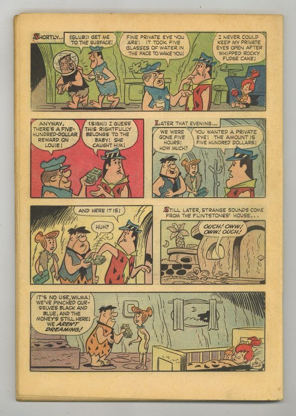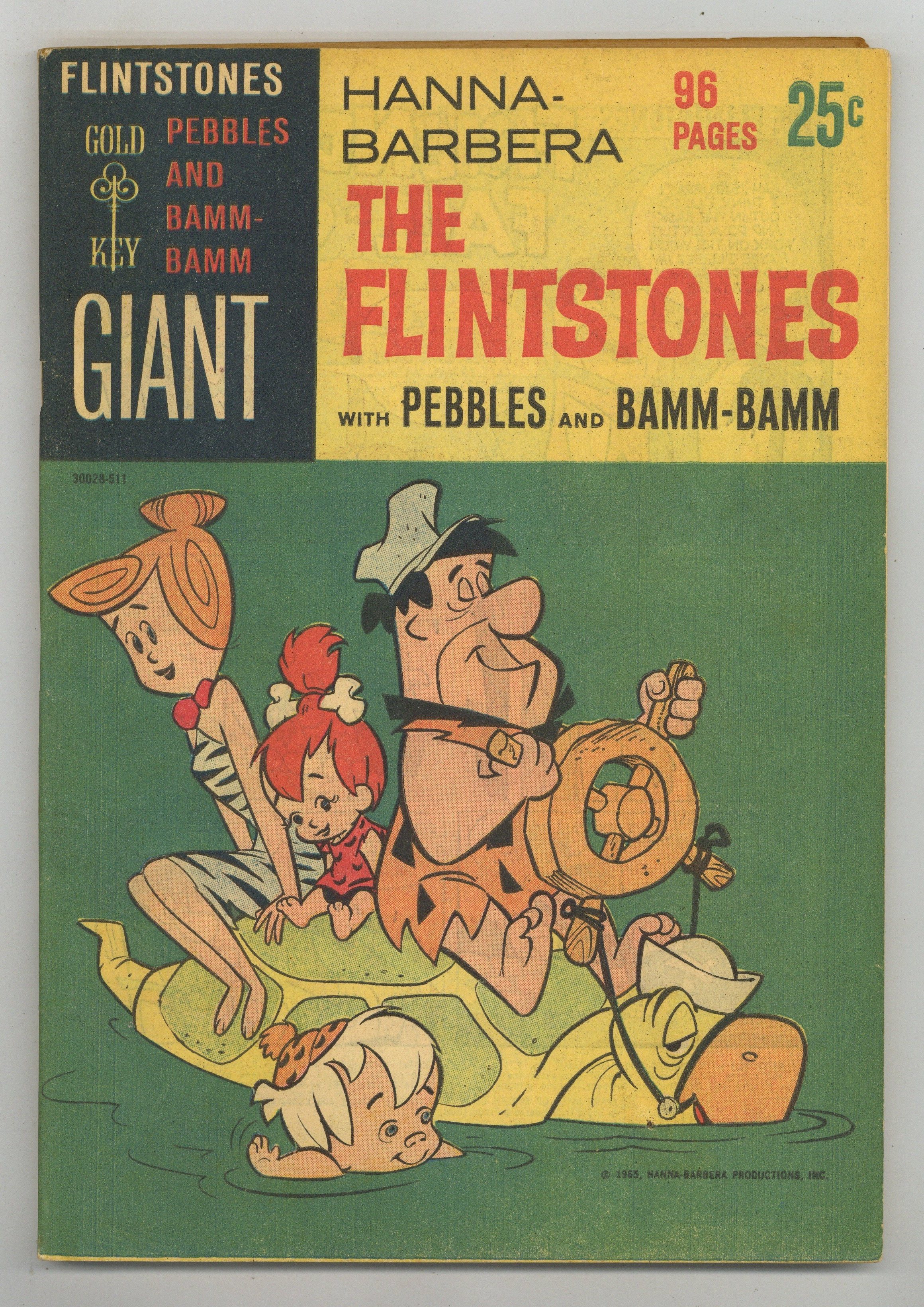 Starts Dec 8 Flintstones with Pebbles and Bamm Bamm (1965), 100 page Giant, newsprint cover. Dell published only a few giants with newsprint cover, but soon abandoned the idea because the comics were so easily damaged. Understandably, newsprint cover editions in high grade are especially difficult to find compared to titles featuring the standard cardstock covers. Cover price $0.25. Grade: VG/FN 5.0 explanation of grade Condition: Used (collectible)