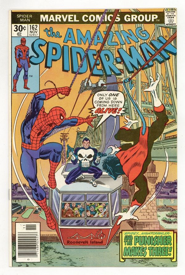 Ended May 27 2025 Winning Bid $46 "Let the Punisher Fit the Crime!" Part 2 of 2. Guest-starring Nightcrawler and the Punisher. Script by Len Wein. Art by Ross Andru (breakdowns), Mike Esposito (finishes), and Dave Hunt (backgrounds). Cover by Ross Andru and John Romita. After a scuffle atop the Roosevelt Tramway; the Punisher, Nightcrawler, and Spider-Man come to a meeting of the minds! The trio realizes that none of them are the lethal sniper terrorizing the city! And they vow to catch the mysterious gunman before his next kill! Acting on a tip; the web-slinger, Punisher, and Nightcrawler converge on a street festival to smoke out the shooter! Can the heroes solve the killer's deadly puzzle? Or perhaps better stated...his Jigsaw puzzle? First appearances of Dr. Marla Madison and Jigsaw. Cameo appearances by Harry Osborn, Flash Thompson, Mary Jane Watson, and J. Jonah Jameson. (Notes: The Punisher appears next in Amazing Spider-Man 174. Jigsaw returns in Amazing Spider-Man 188. This story was reprinted in Marvel Tales 215.) 36 pages. Cover price $0.30. Grade: FN/VF 7.0 explanation of grade Condition: Used (collectible)