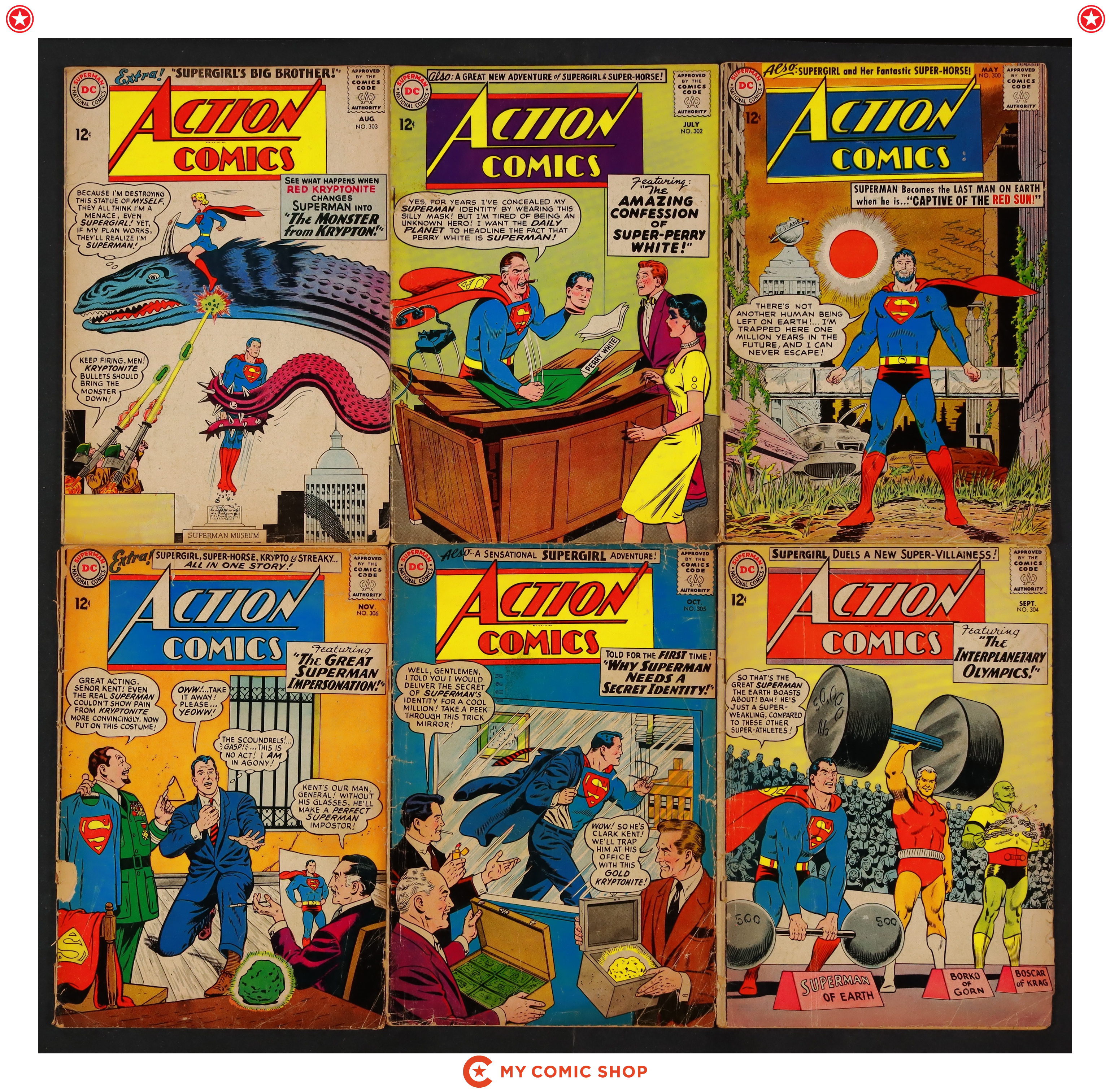 Issues 300 and 302-306 of Action Comics (1938 DC). Most will grade in the GD range with a couple grading FR.