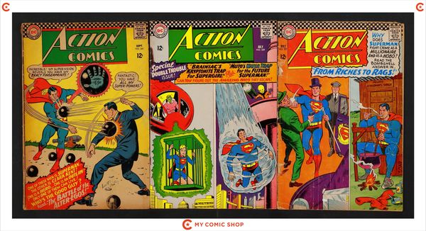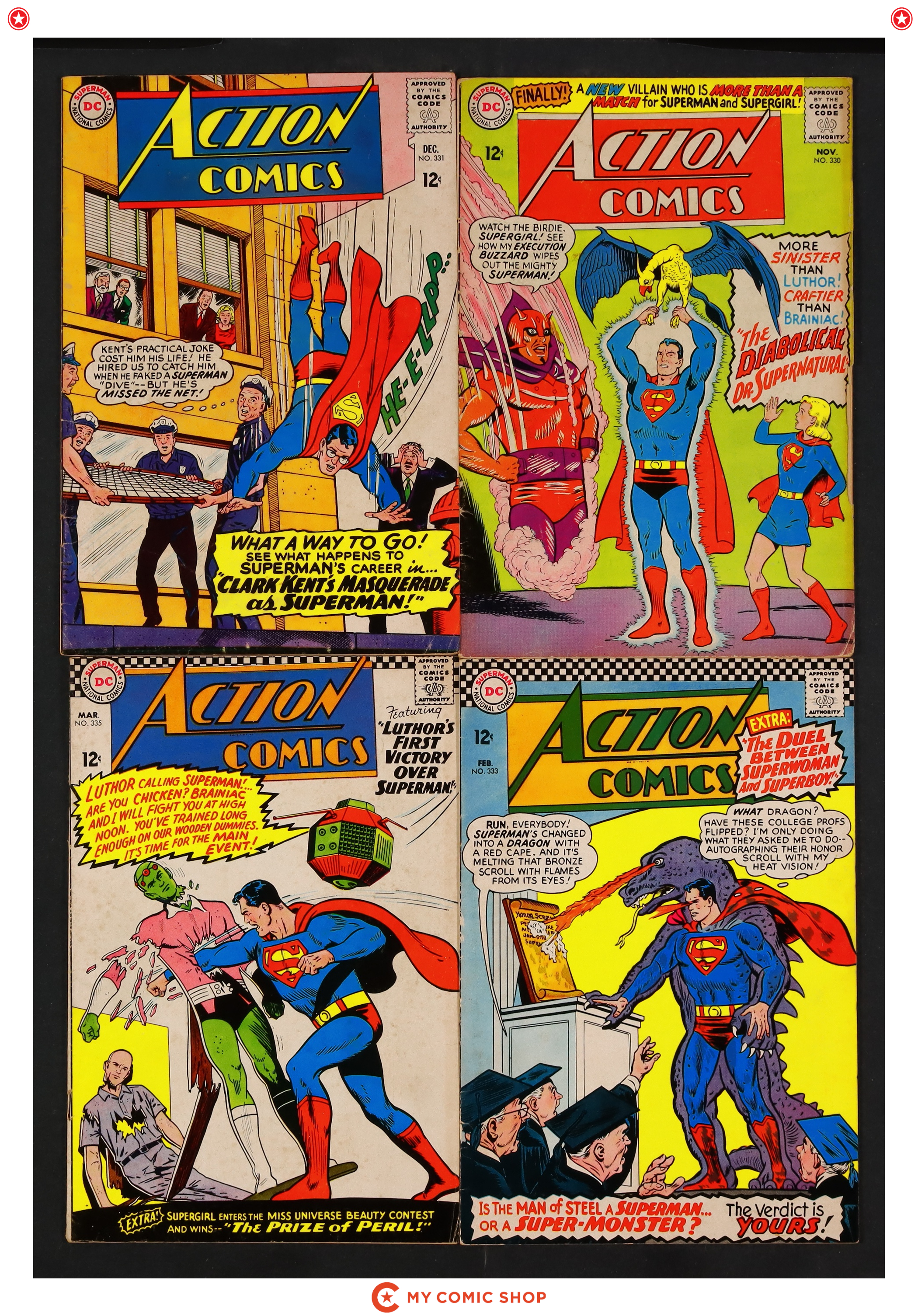 Issues 330, 331, 333, 335, 337, 339, and 341 of Action Comics (1938 DC). Most will grade in the GD range.