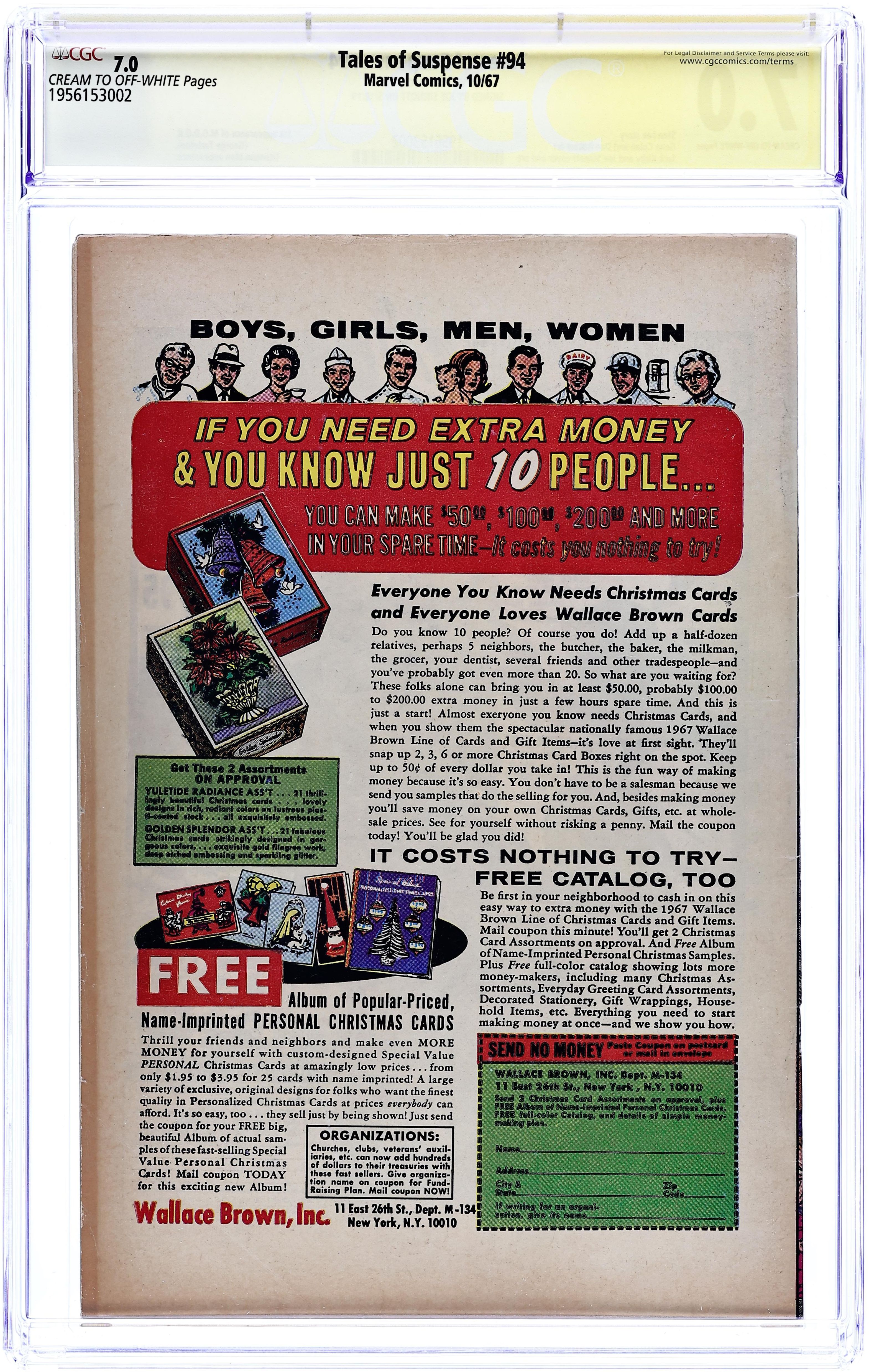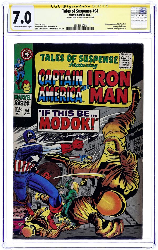 Tags: Marvel Legacy Numbering: Captain America (part 94), Marvel Legacy Numbering: Tales of Suspense (part 94), Captain America, Iron ManTales of Suspense (1959) 94 CGC 7.0 SS Sinnott